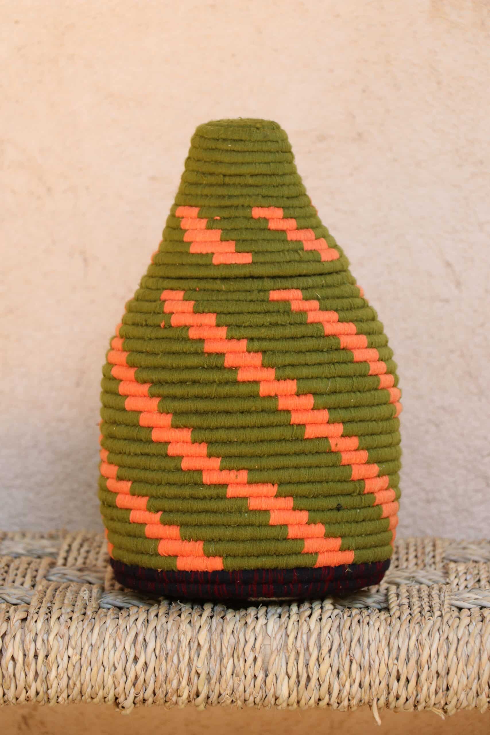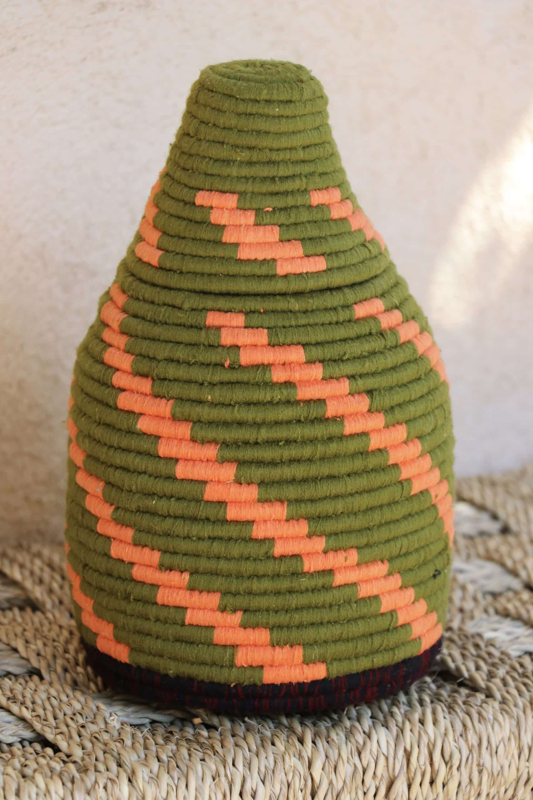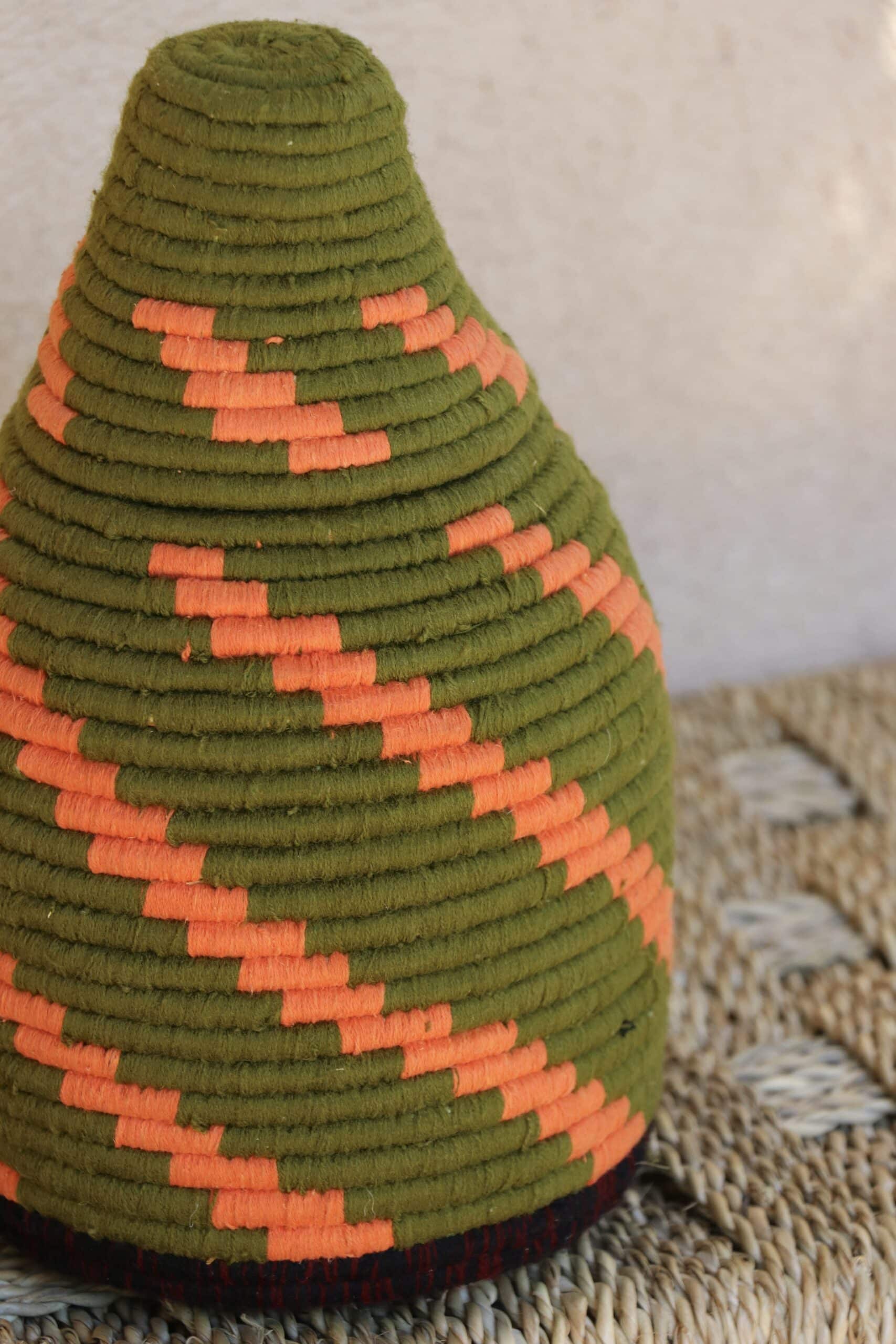 Parfaites pour pimper son intérieur de façon authentique tout en étant pratiques pour le rangement de petits objets, les corbeilles berbères sont fabriquées de fibres végétales pour former une base : cette fibre est appelée alfa, une plante vivace et robuste qui est originaire de l’ouest du bassin méditerranéen. Ces fibres végétales sont ensuite décorées en tissant à la main du fil de laine, de coton ou acrylique (souvent issue du recyclage) pour les couleurs fluo.