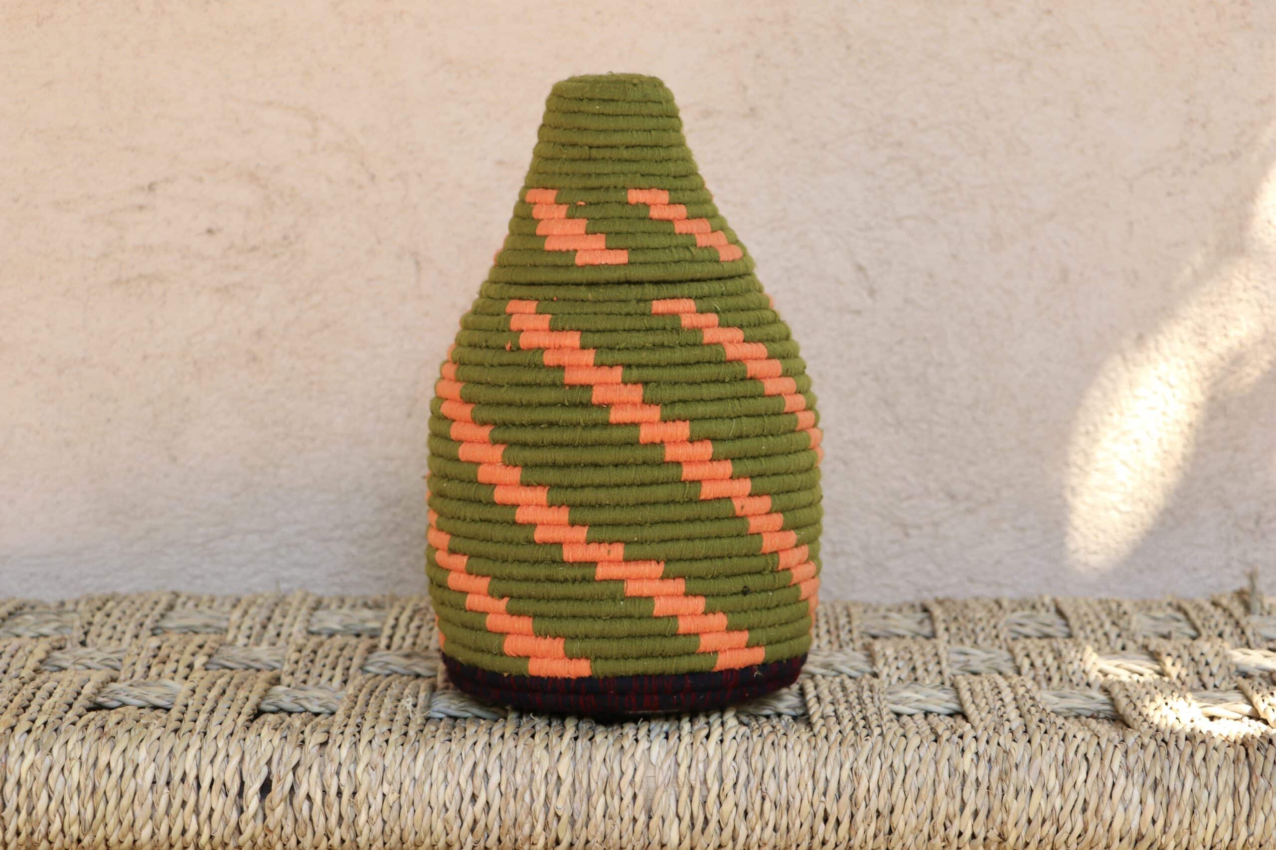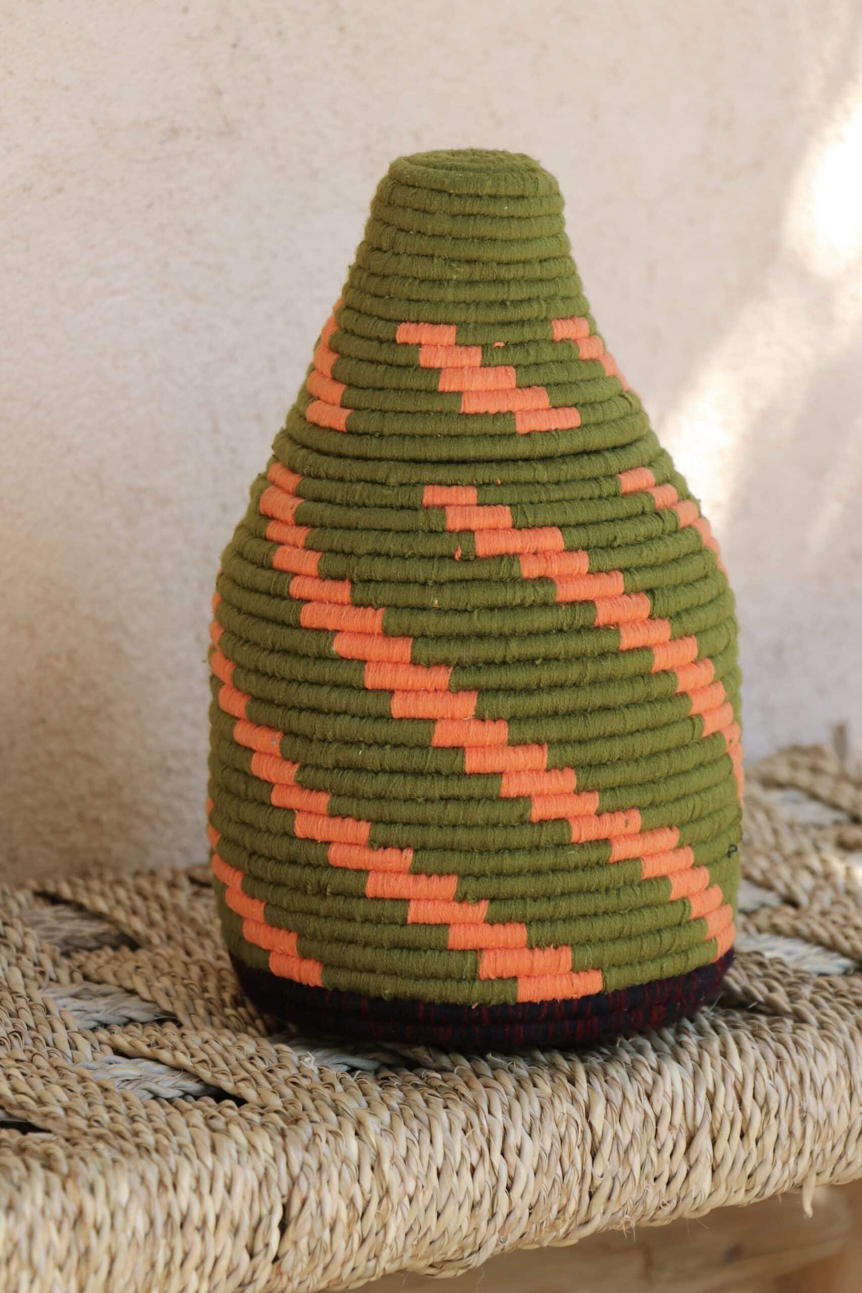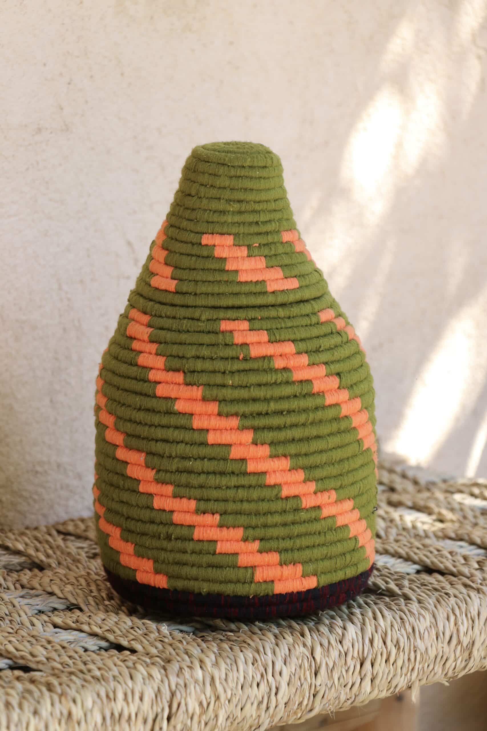Parfaites pour pimper son intérieur de façon authentique tout en étant pratiques pour le rangement de petits objets, les corbeilles berbères sont fabriquées de fibres végétales pour former une base : cette fibre est appelée alfa, une plante vivace et robuste qui est originaire de l’ouest du bassin méditerranéen. Ces fibres végétales sont ensuite décorées en tissant à la main du fil de laine, de coton ou acrylique (souvent issue du recyclage) pour les couleurs fluo.
