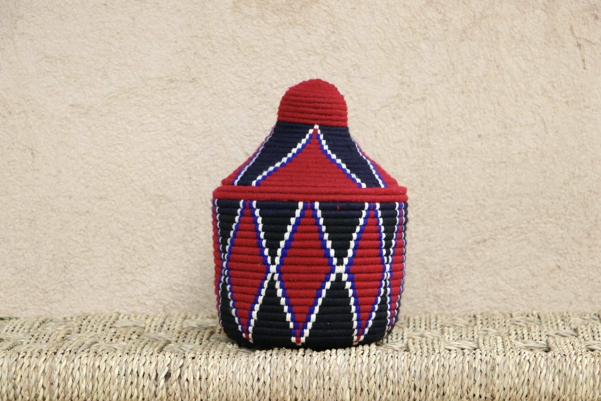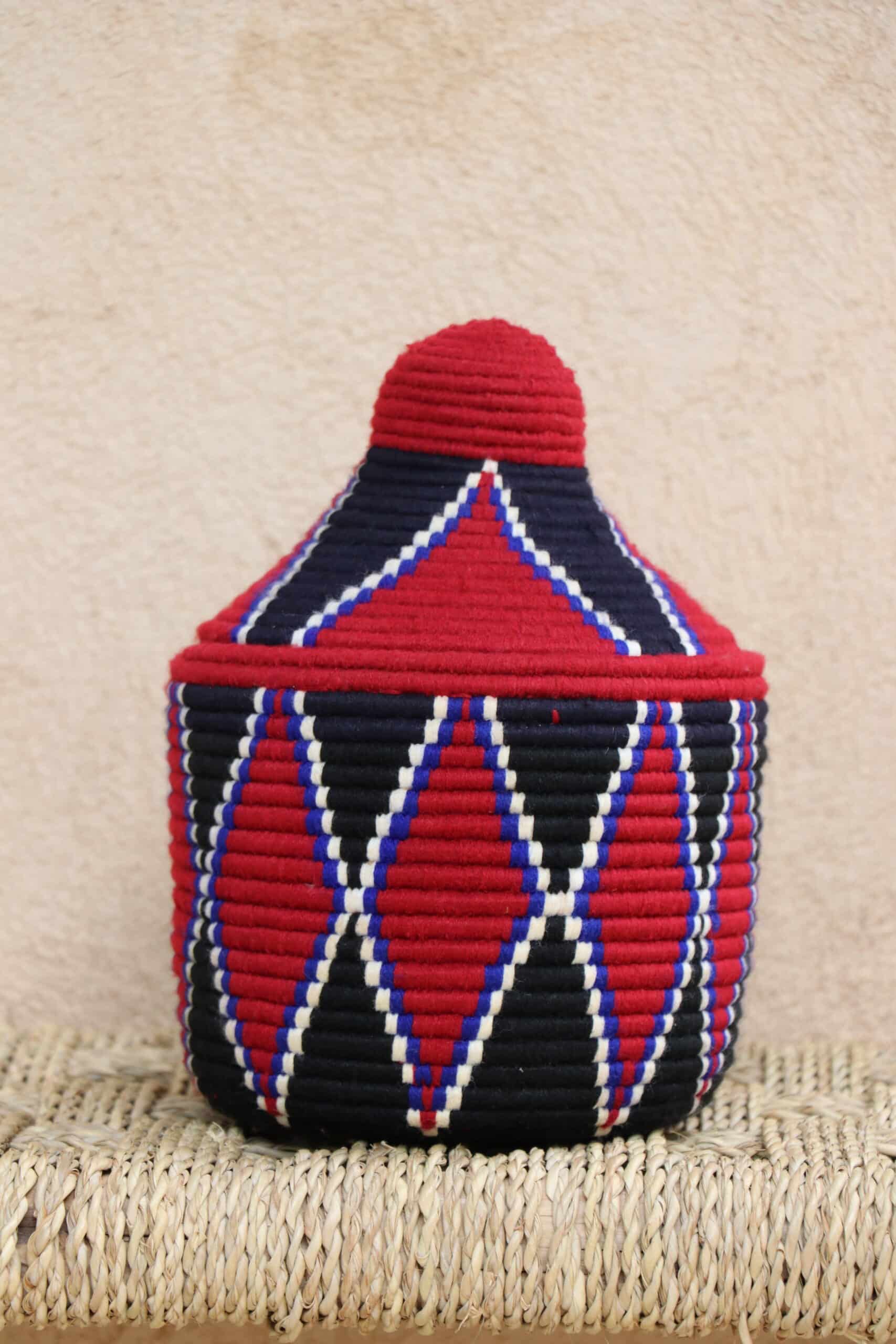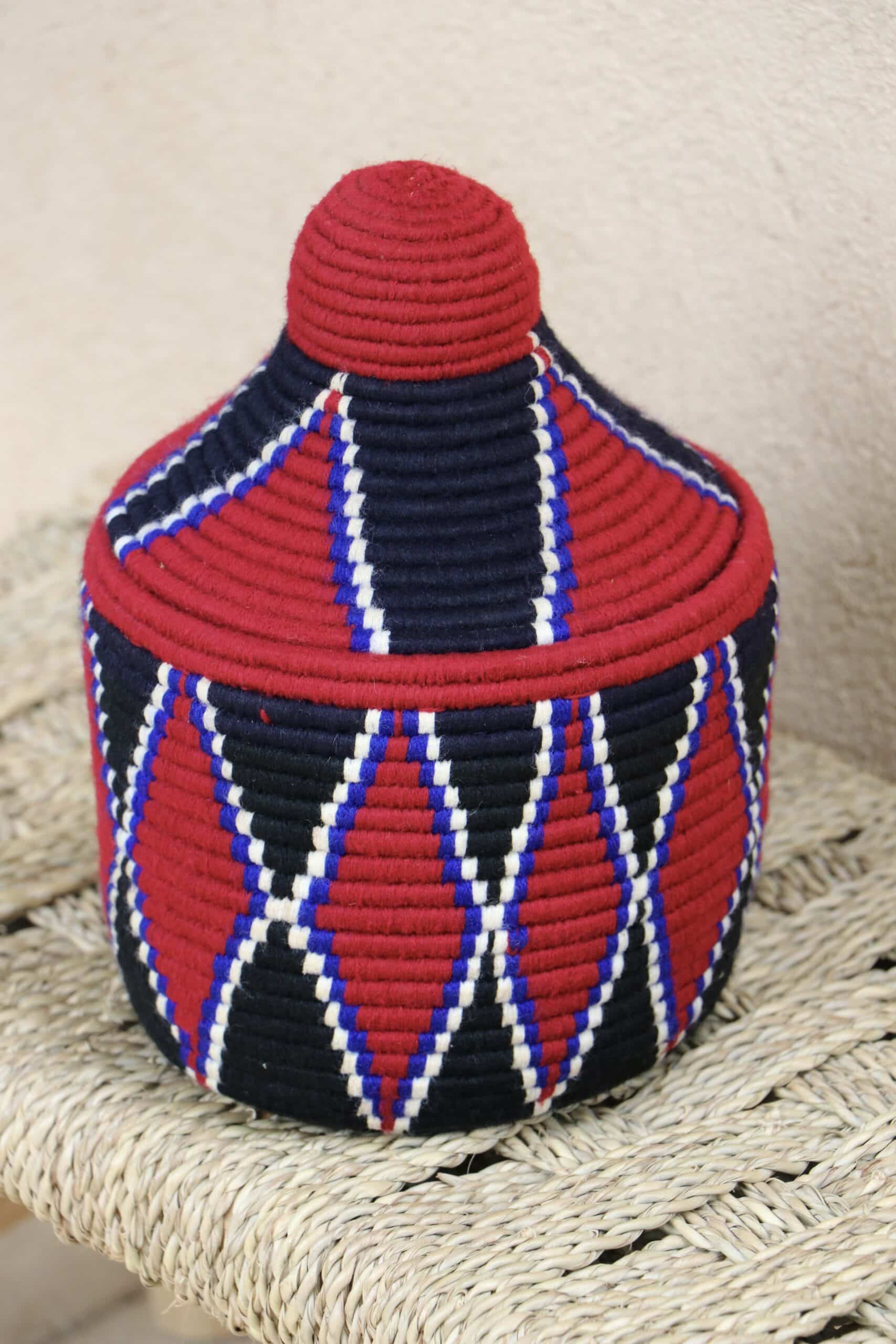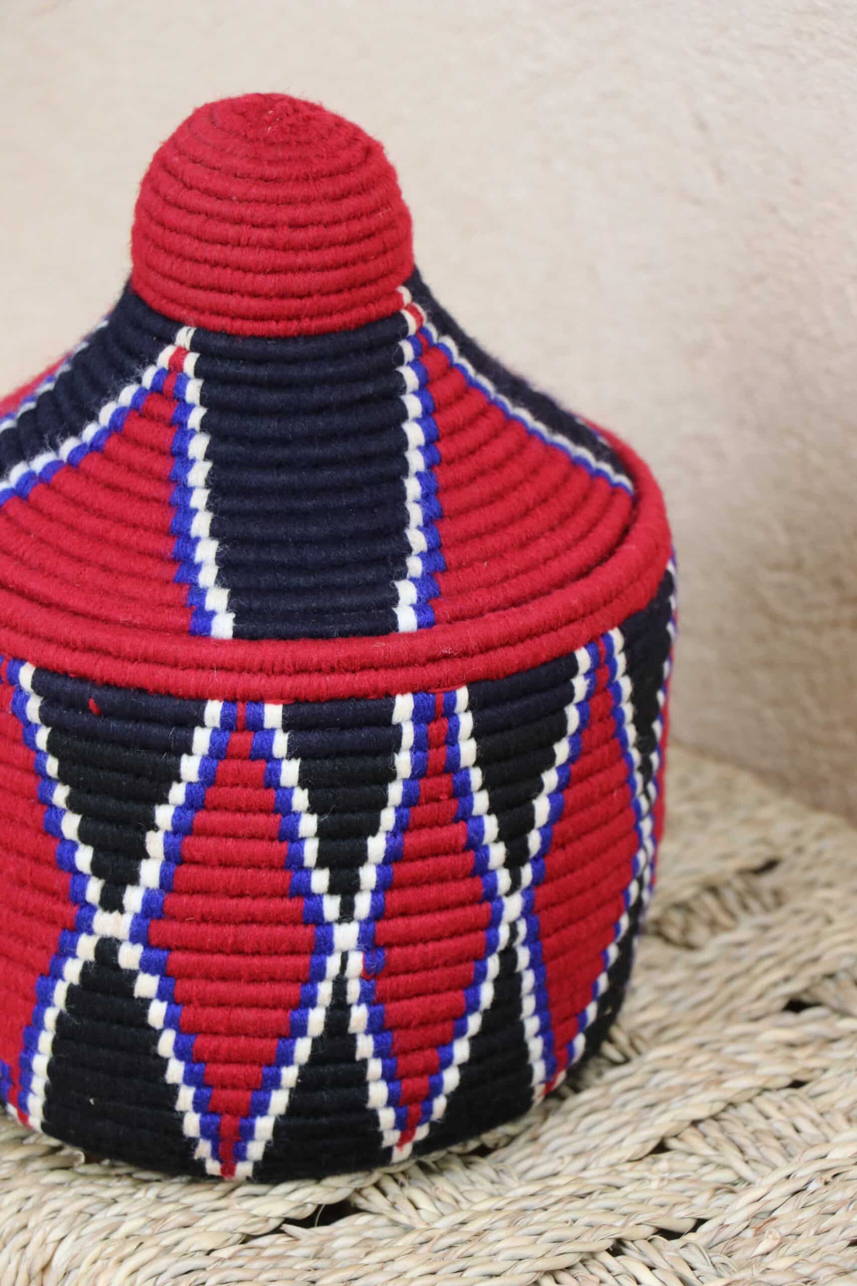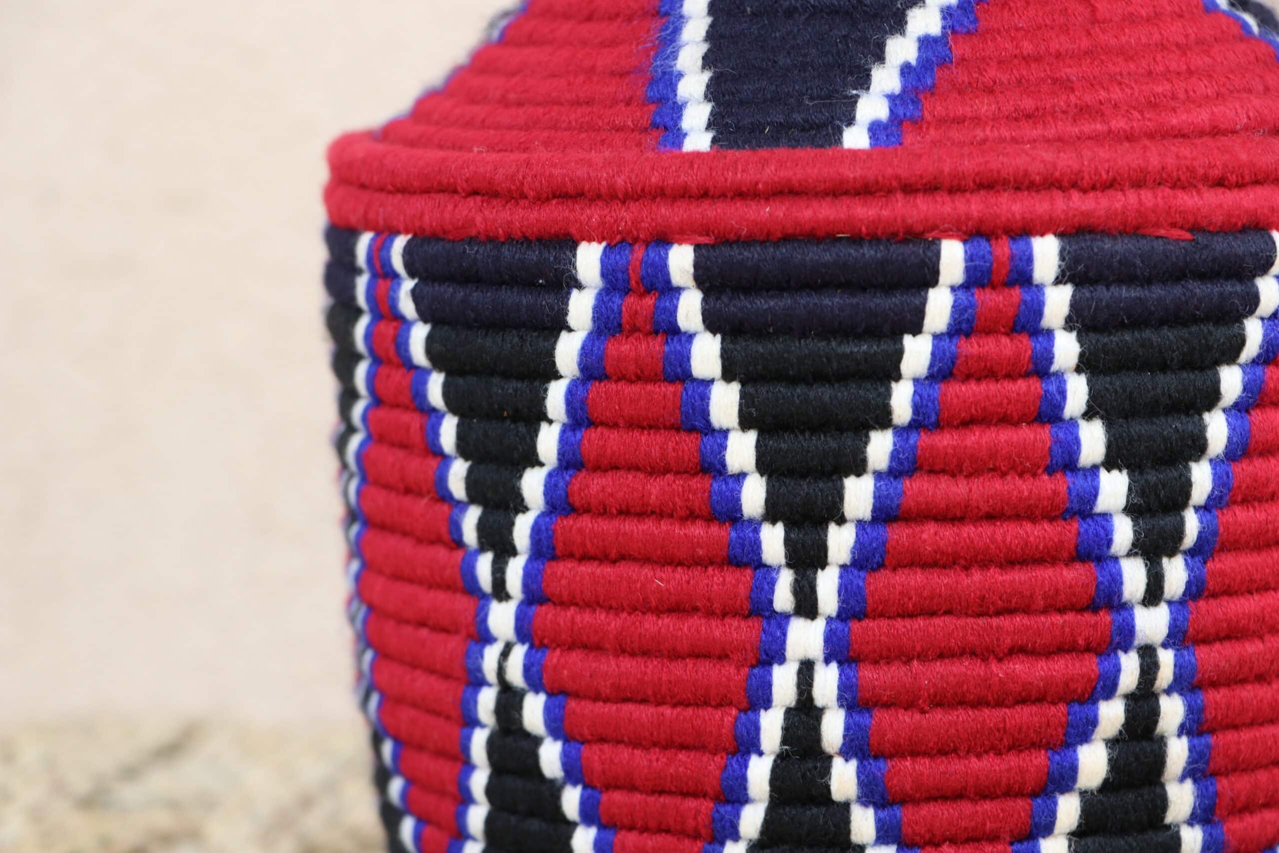 Parfaites pour pimper son intérieur de façon authentique tout en étant pratiques pour le rangement de petits objets, les corbeilles berbères sont fabriquées de fibres végétales pour former une base : cette fibre est appelée alfa, une plante vivace et robuste qui est originaire de l’ouest du bassin méditerranéen. Ces fibres végétales sont ensuite décorées en tissant à la main du fil de laine, de coton ou acrylique (souvent issue du recyclage) pour les couleurs fluo.