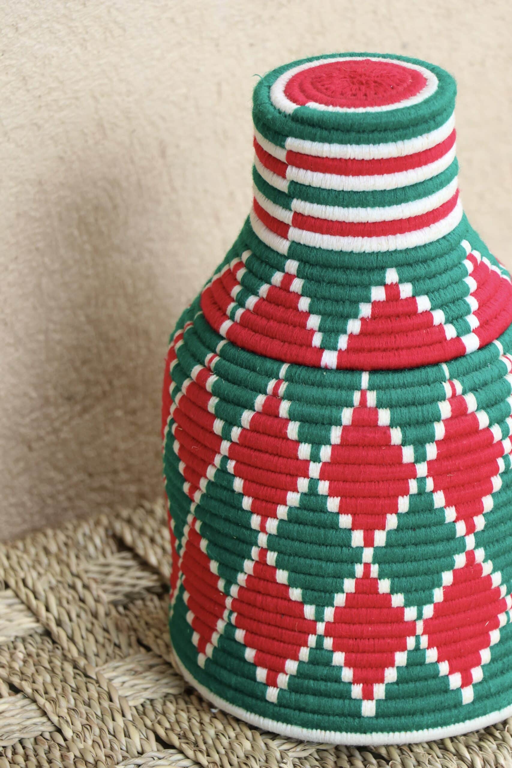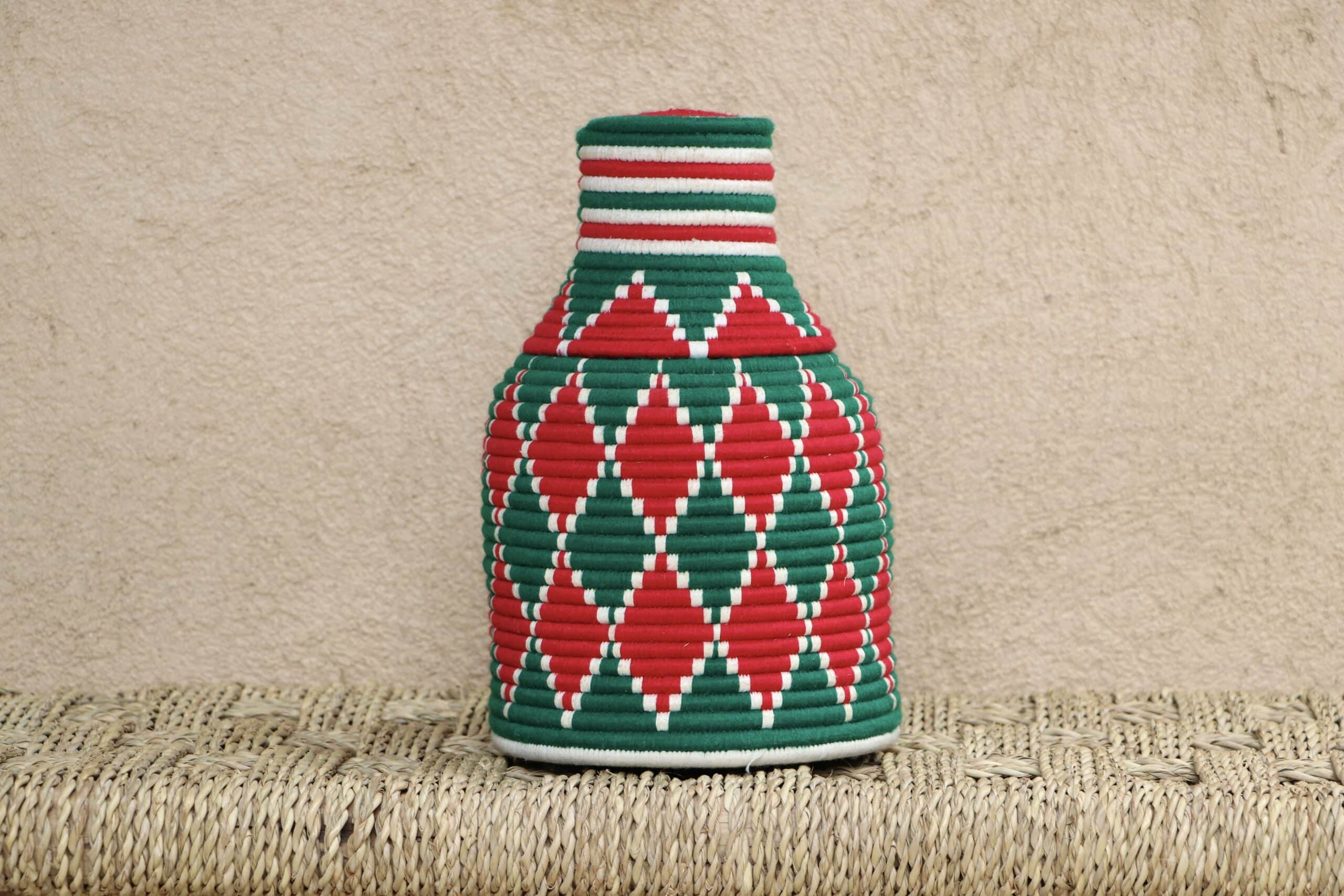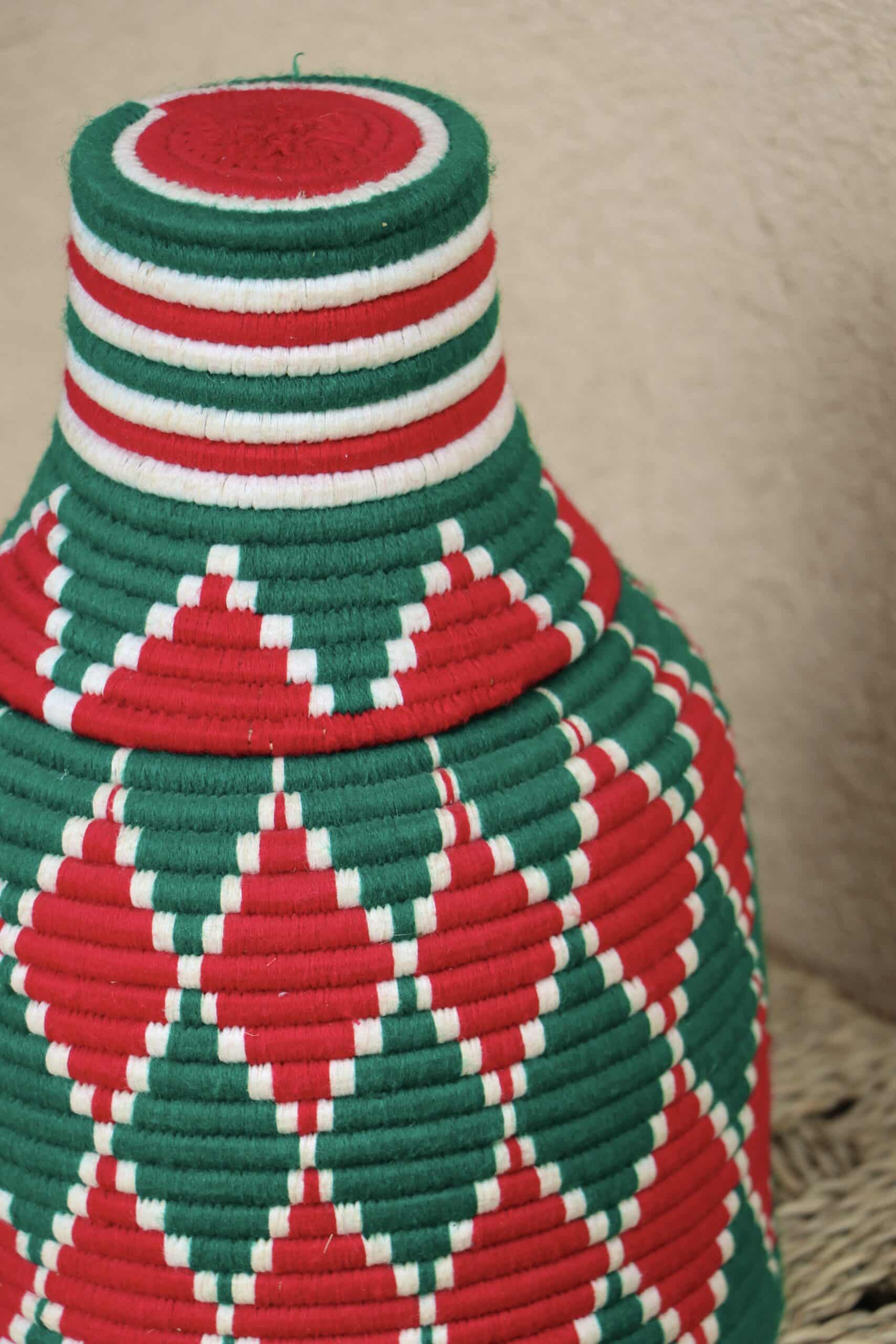 Parfaites pour pimper son intérieur de façon authentique tout en étant pratiques pour le rangement de petits objets, les corbeilles berbères sont fabriquées de fibres végétales pour former une base : cette fibre est appelée alfa, une plante vivace et robuste qui est originaire de l’ouest du bassin méditerranéen. Ces fibres végétales sont ensuite décorées en tissant à la main du fil de laine, de coton ou acrylique (souvent issue du recyclage) pour les couleurs fluo.