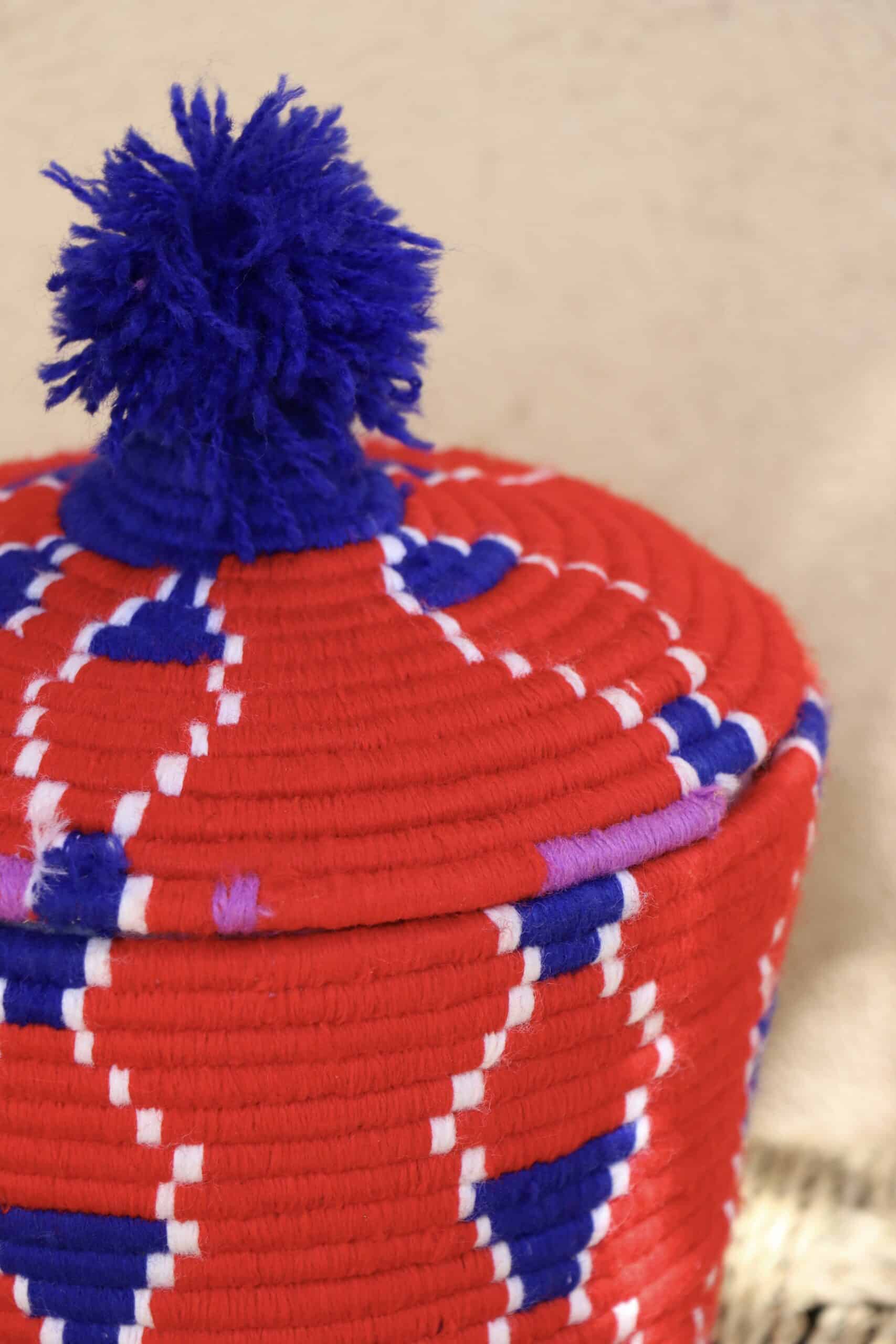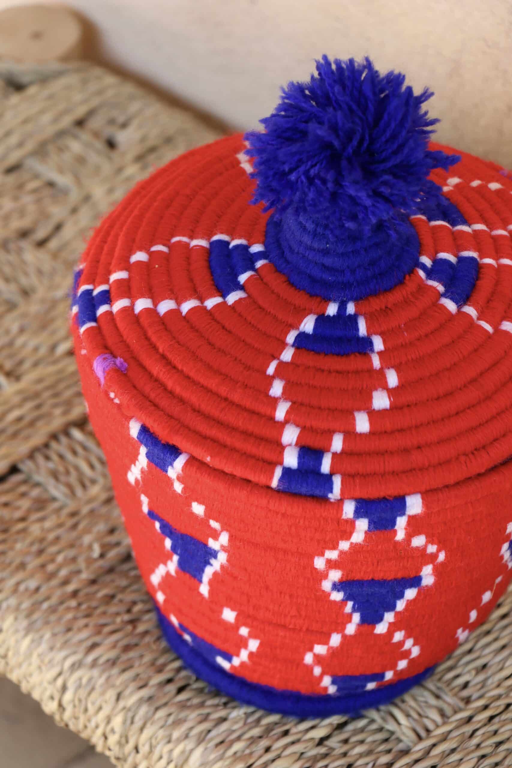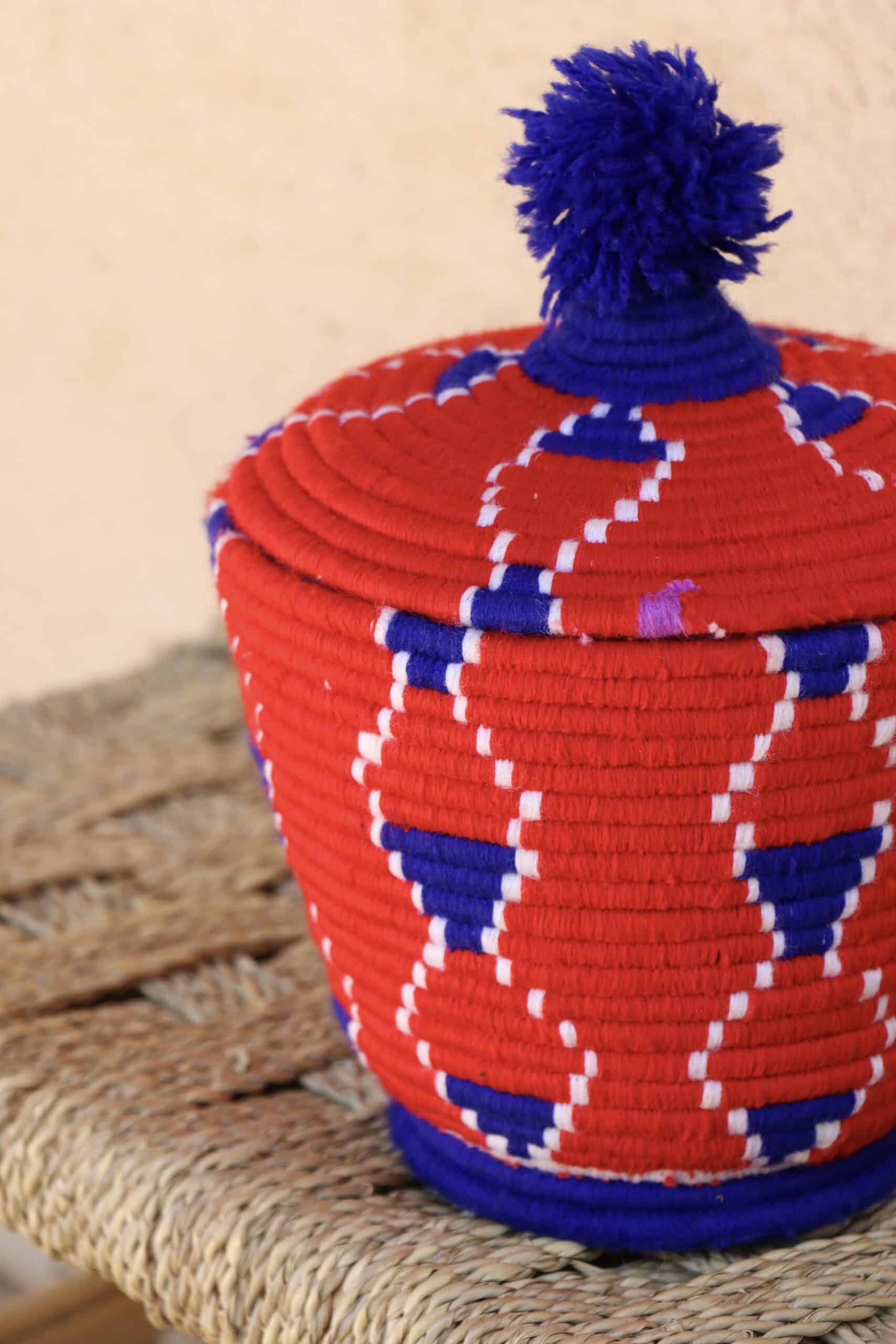 Parfaites pour pimper son intérieur de façon authentique tout en étant pratiques pour le rangement de petits objets, les corbeilles berbères sont fabriquées de fibres végétales pour former une base : cette fibre est appelée alfa, une plante vivace et robuste qui est originaire de l’ouest du bassin méditerranéen. Ces fibres végétales sont ensuite décorées en tissant à la main du fil de laine, de coton ou acrylique (souvent issue du recyclage) pour les couleurs fluo.