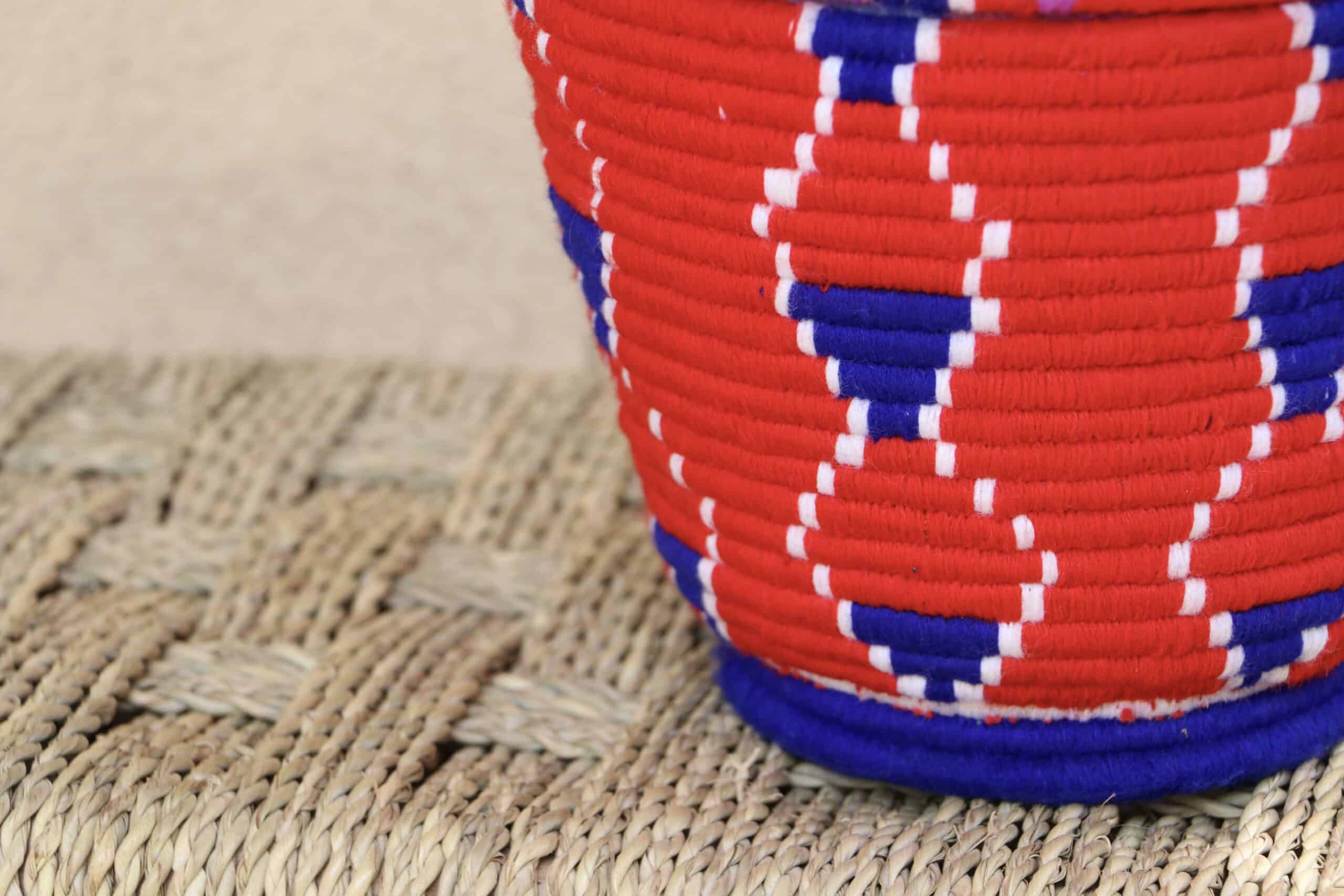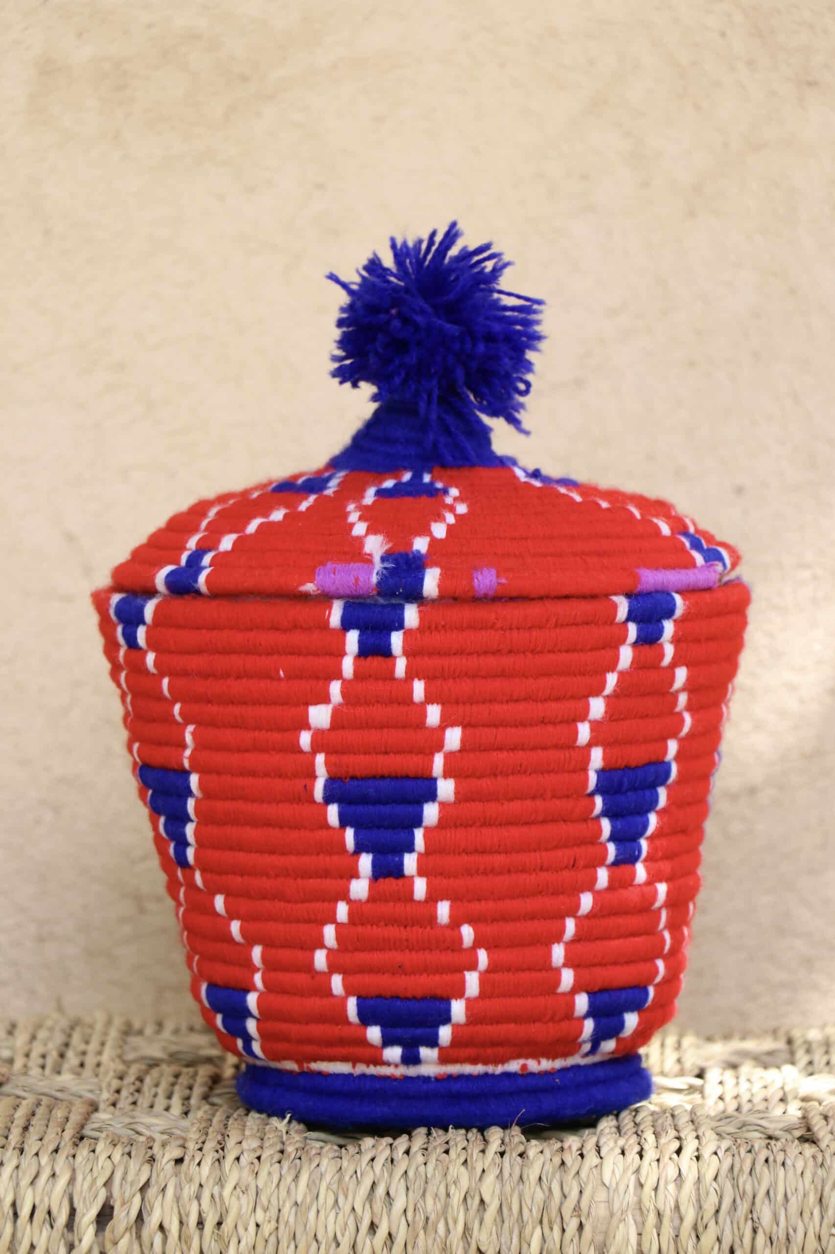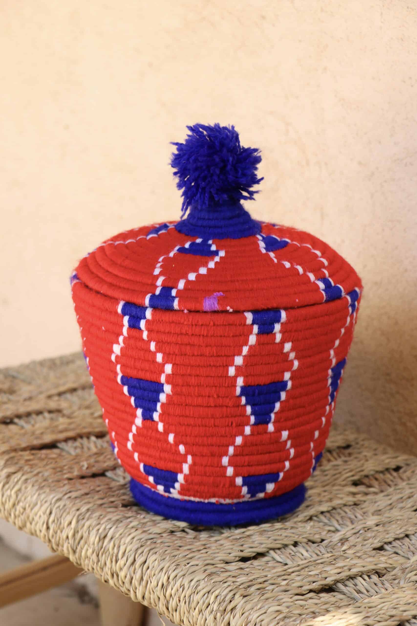 Parfaites pour pimper son intérieur de façon authentique tout en étant pratiques pour le rangement de petits objets, les corbeilles berbères sont fabriquées de fibres végétales pour former une base : cette fibre est appelée alfa, une plante vivace et robuste qui est originaire de l’ouest du bassin méditerranéen. Ces fibres végétales sont ensuite décorées en tissant à la main du fil de laine, de coton ou acrylique (souvent issue du recyclage) pour les couleurs fluo.
