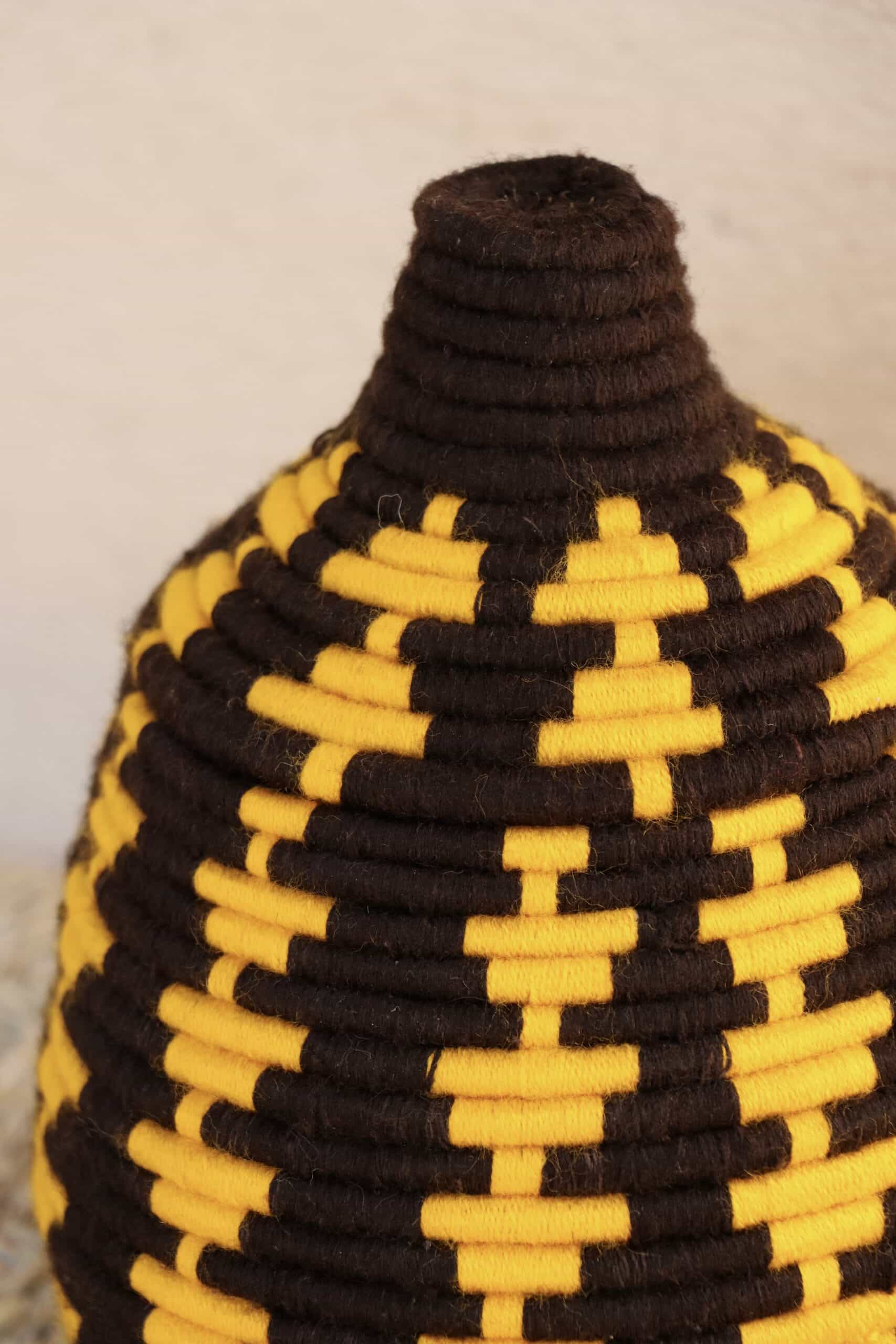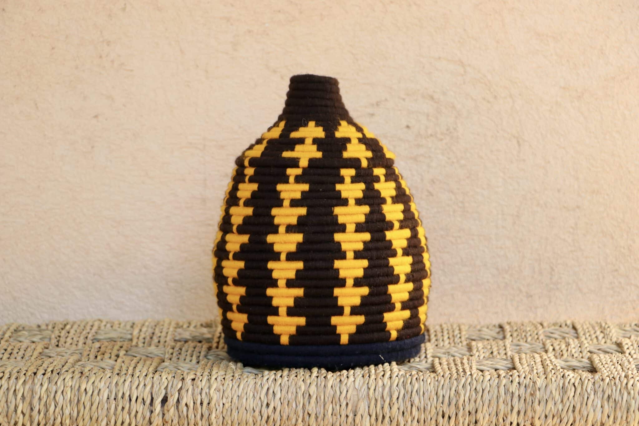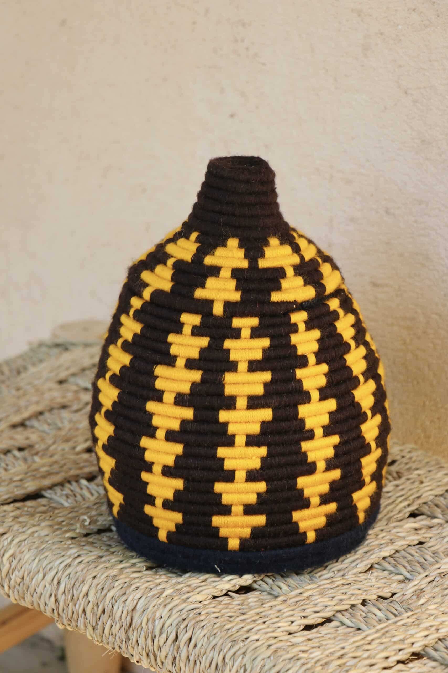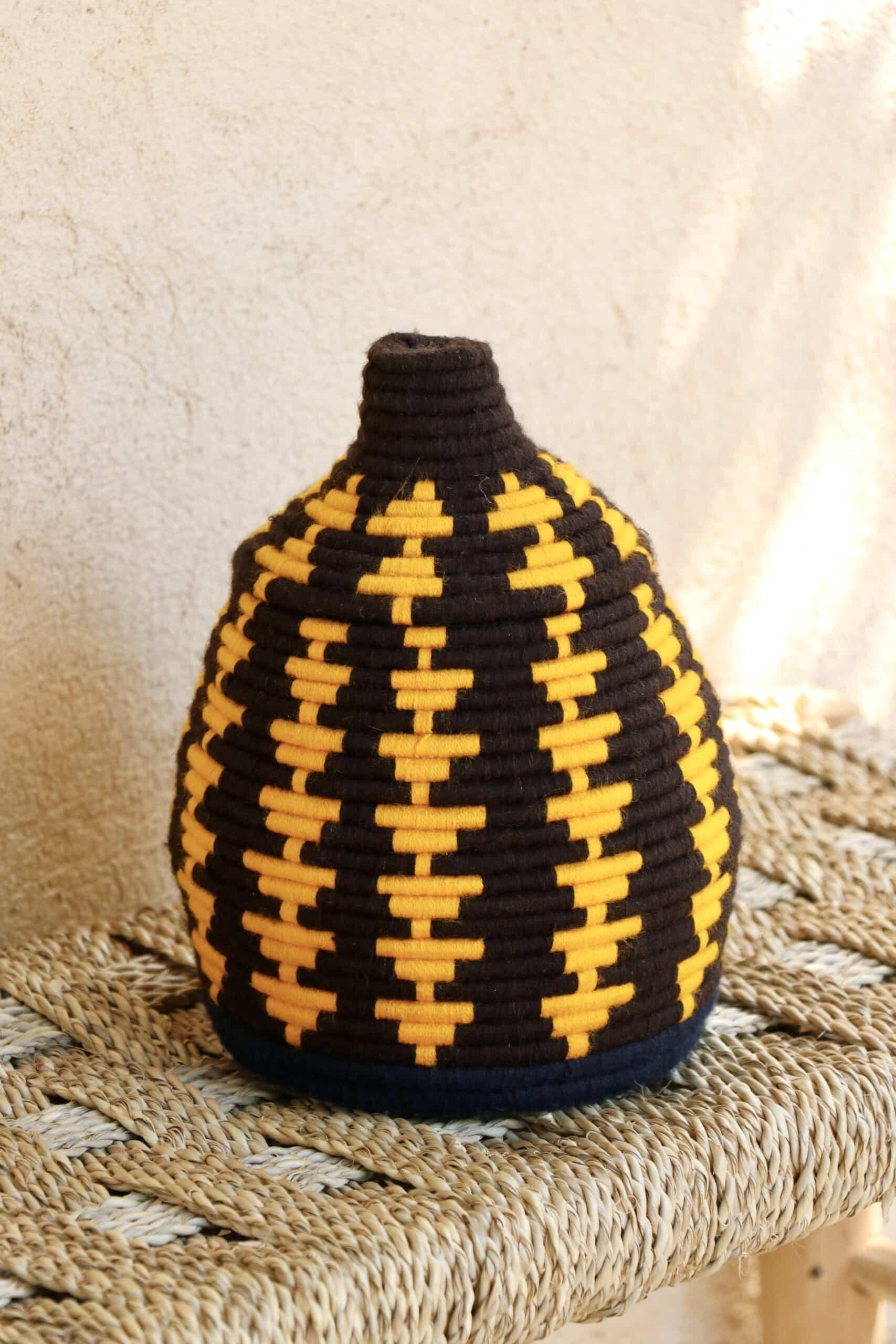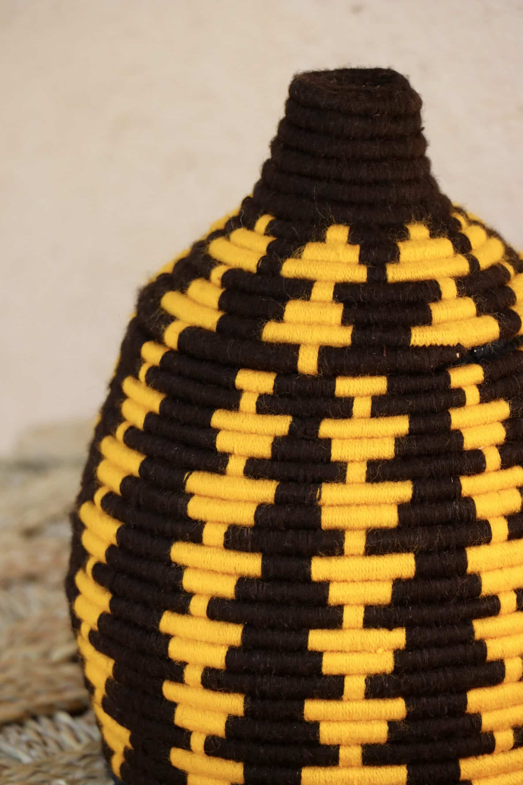 Parfaites pour pimper son intérieur de façon authentique tout en étant pratiques pour le rangement de petits objets, les corbeilles berbères sont fabriquées de fibres végétales pour former une base : cette fibre est appelée alfa, une plante vivace et robuste qui est originaire de l’ouest du bassin méditerranéen. Ces fibres végétales sont ensuite décorées en tissant à la main du fil de laine, de coton ou acrylique (souvent issue du recyclage) pour les couleurs fluo.