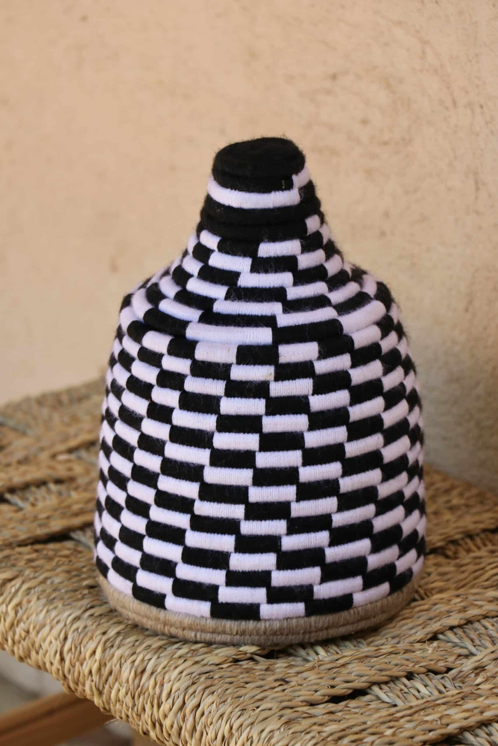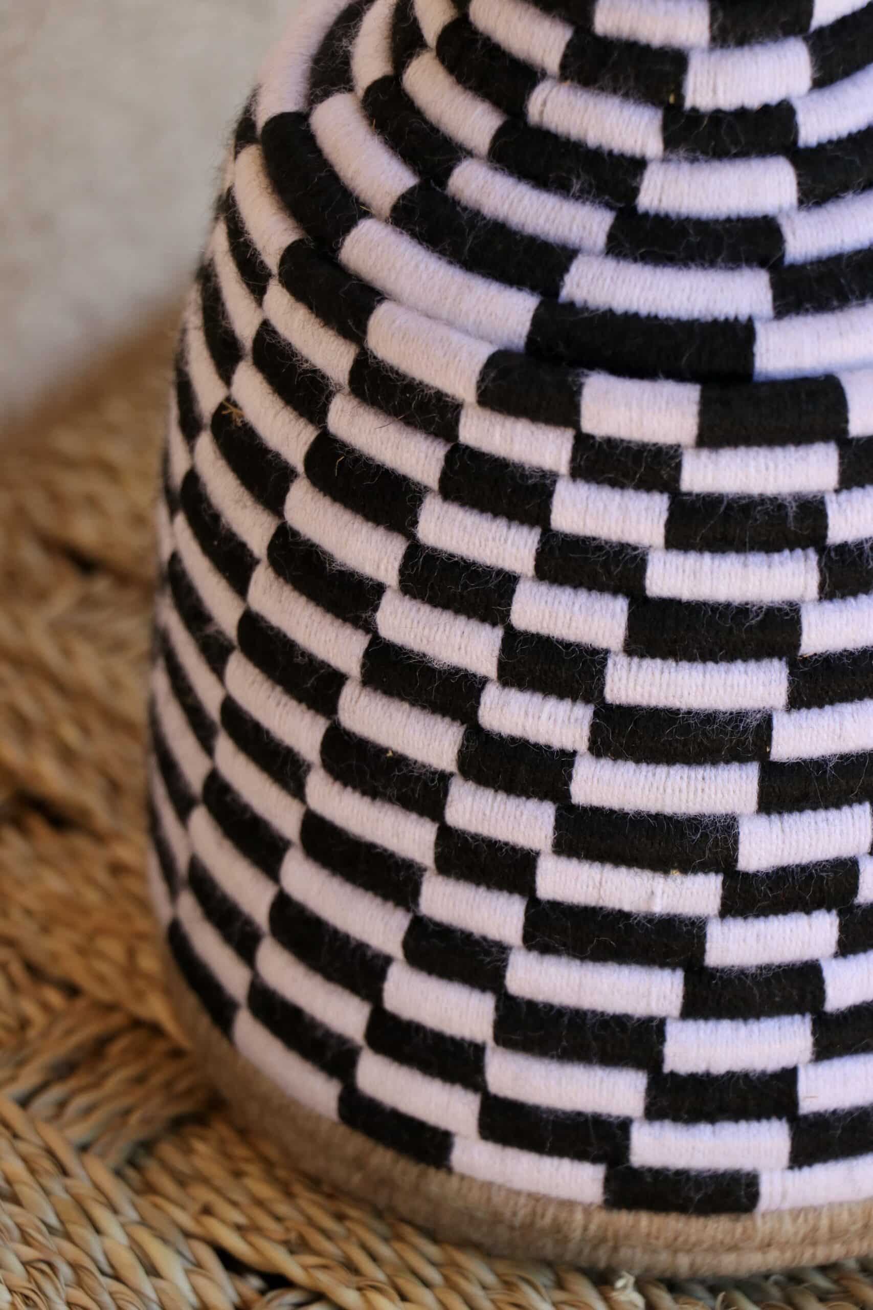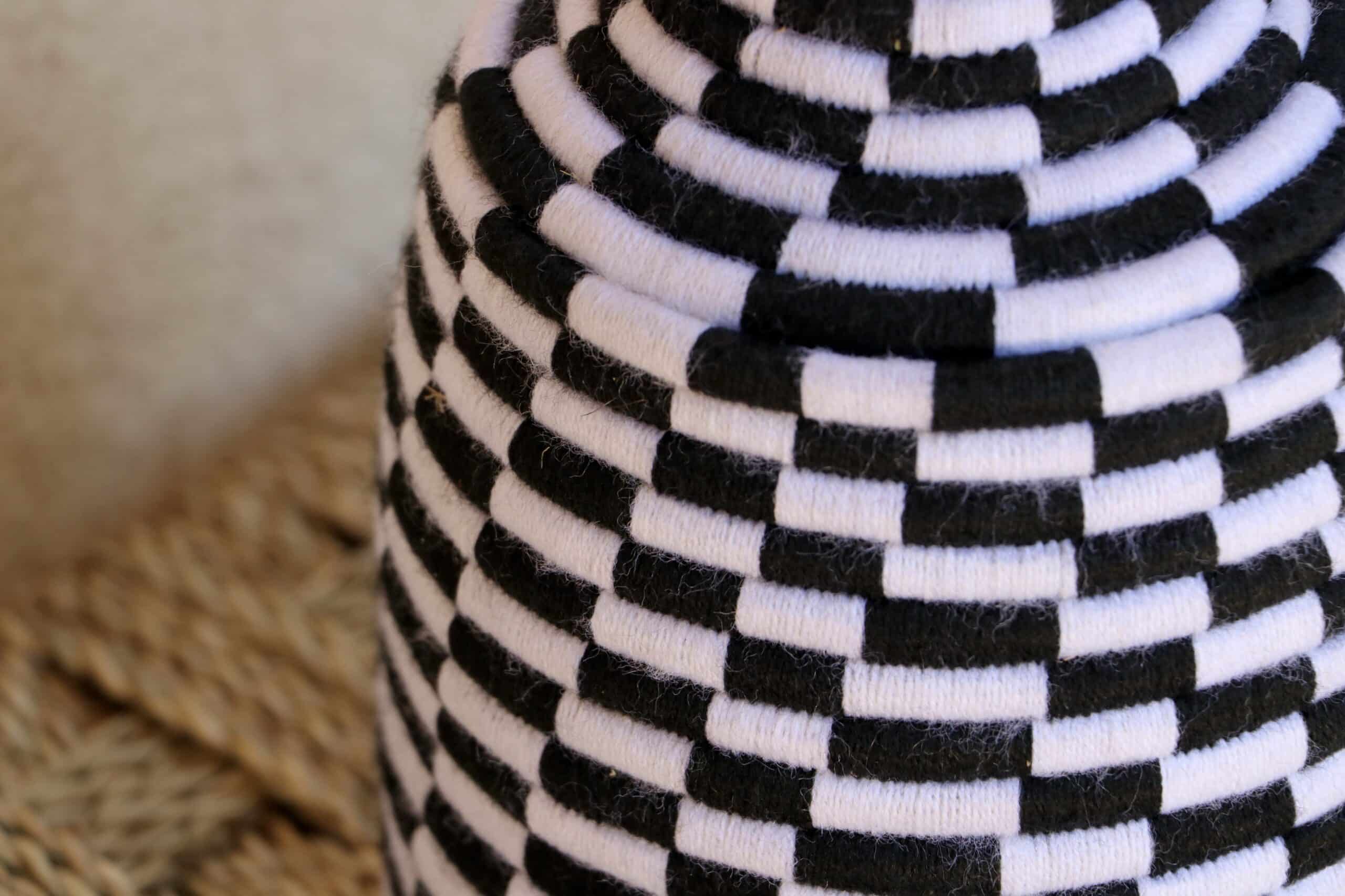 Parfaites pour pimper son intérieur de façon authentique tout en étant pratiques pour le rangement de petits objets, les corbeilles berbères sont fabriquées de fibres végétales pour former une base : cette fibre est appelée alfa, une plante vivace et robuste qui est originaire de l’ouest du bassin méditerranéen. Ces fibres végétales sont ensuite décorées en tissant à la main du fil de laine, de coton ou acrylique (souvent issue du recyclage) pour les couleurs fluo.