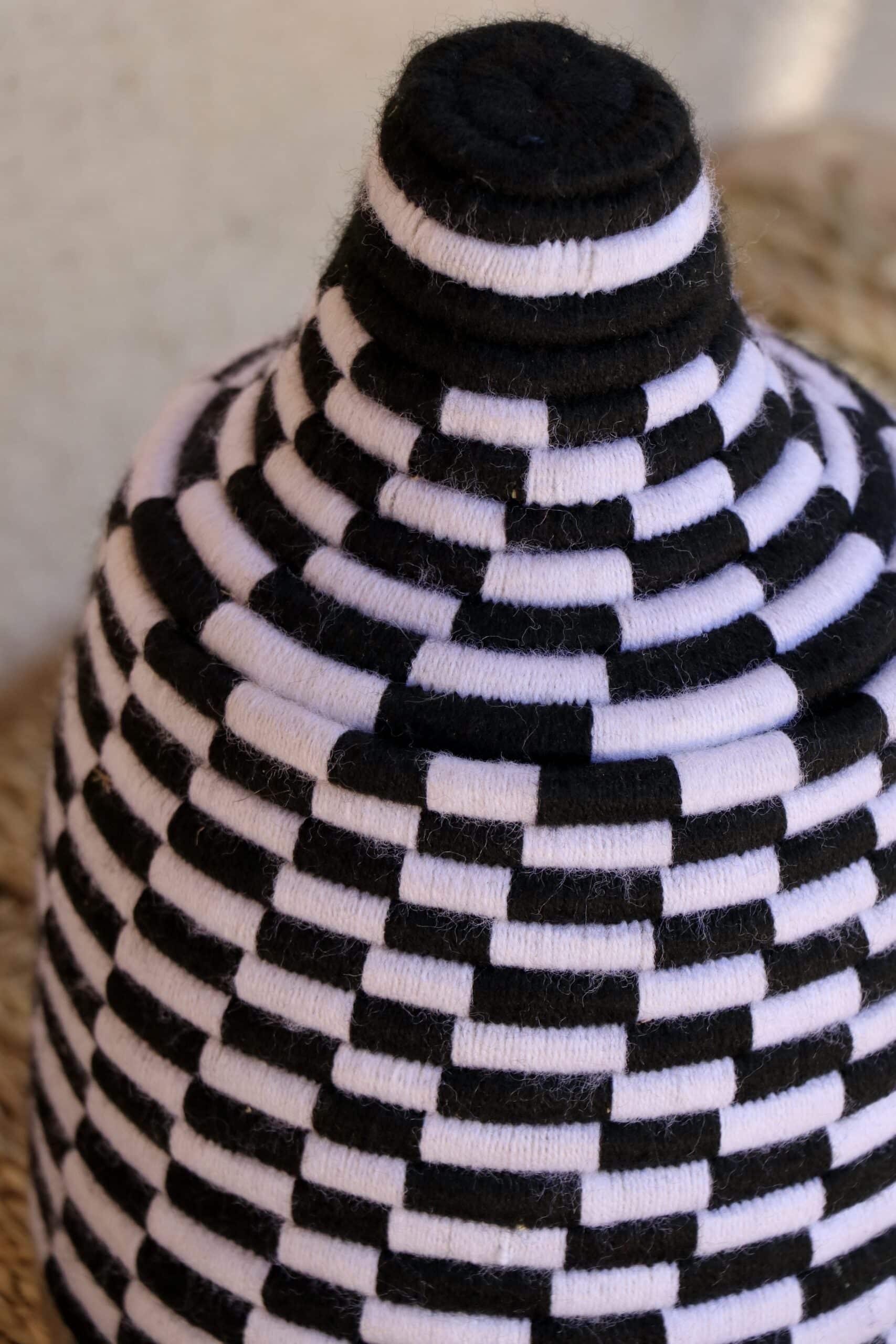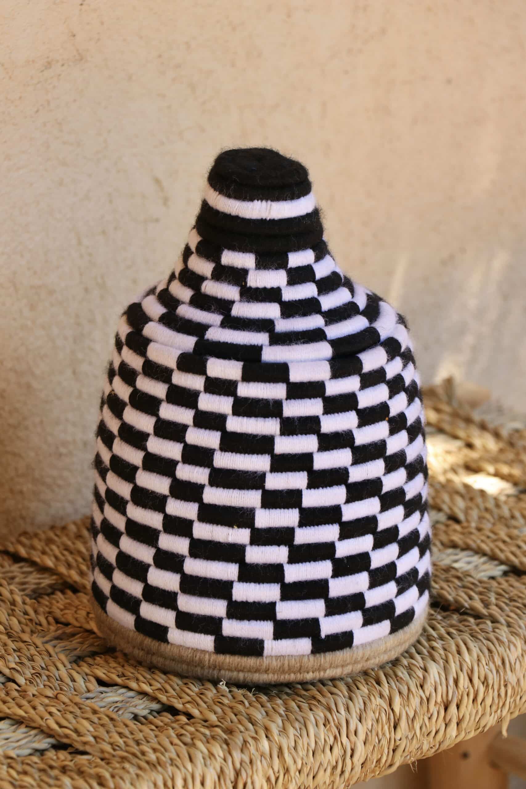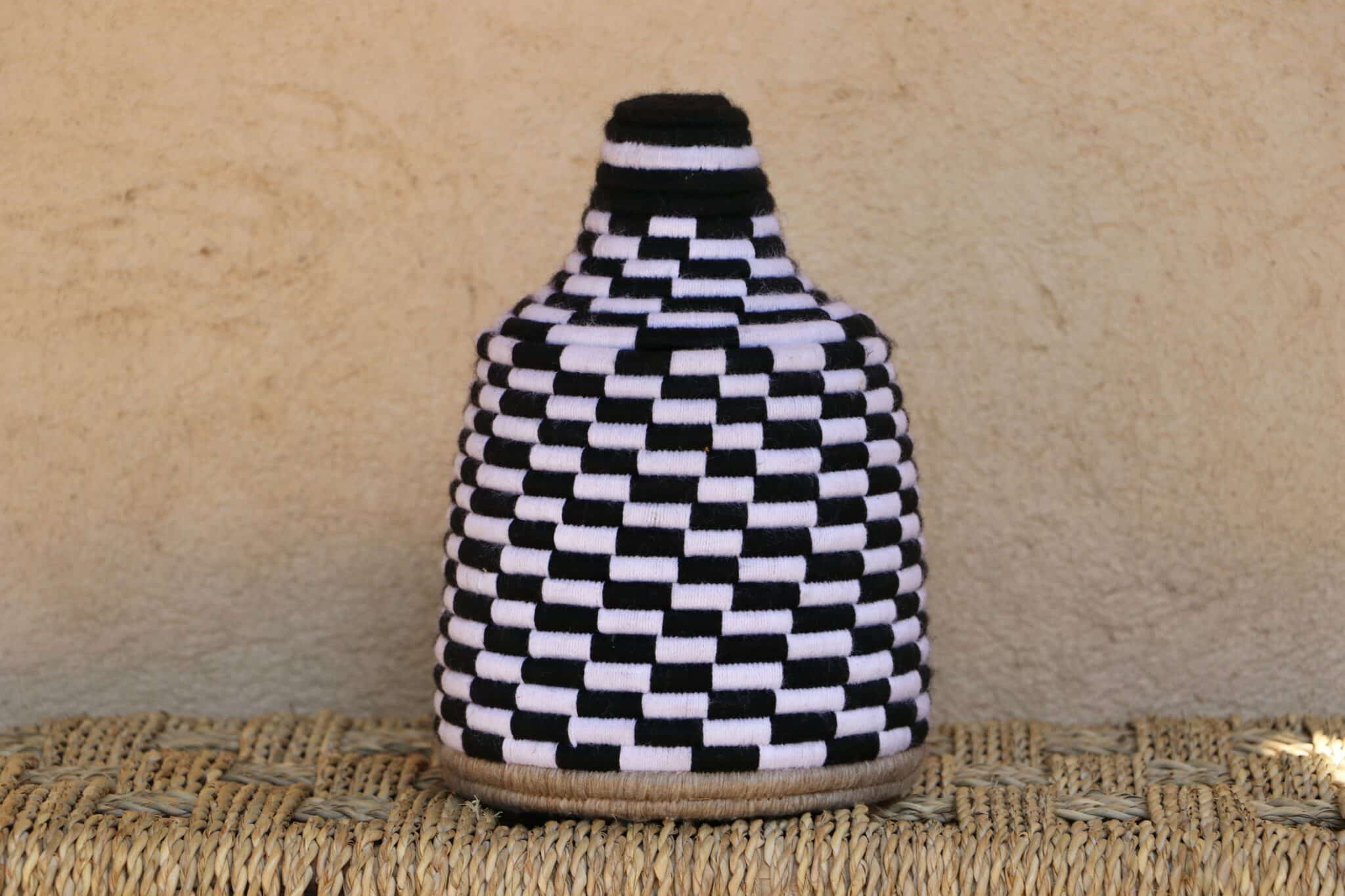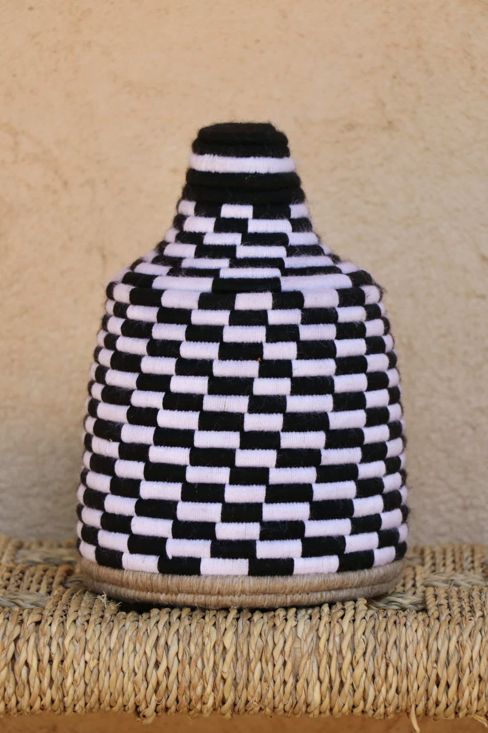 Parfaites pour pimper son intérieur de façon authentique tout en étant pratiques pour le rangement de petits objets, les corbeilles berbères sont fabriquées de fibres végétales pour former une base : cette fibre est appelée alfa, une plante vivace et robuste qui est originaire de l’ouest du bassin méditerranéen. Ces fibres végétales sont ensuite décorées en tissant à la main du fil de laine, de coton ou acrylique (souvent issue du recyclage) pour les couleurs fluo.
