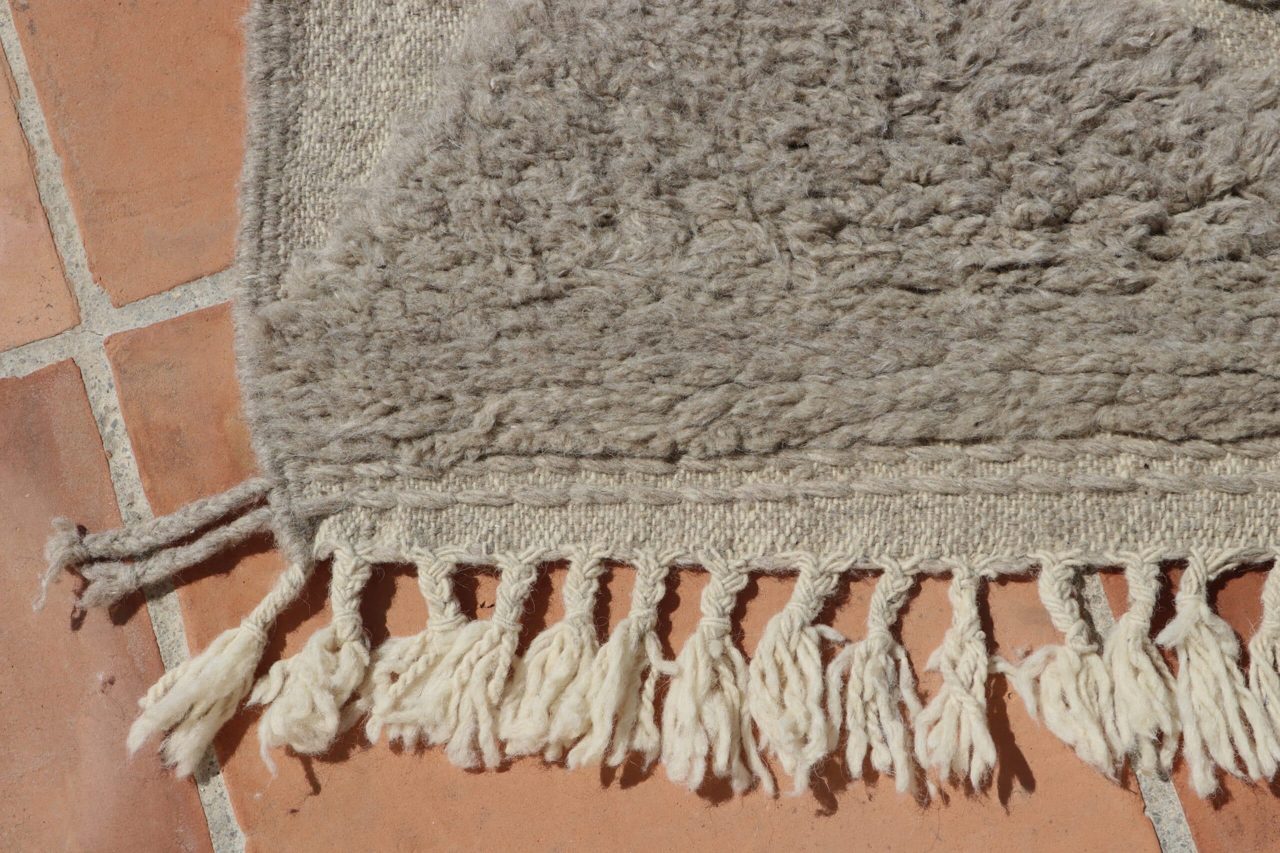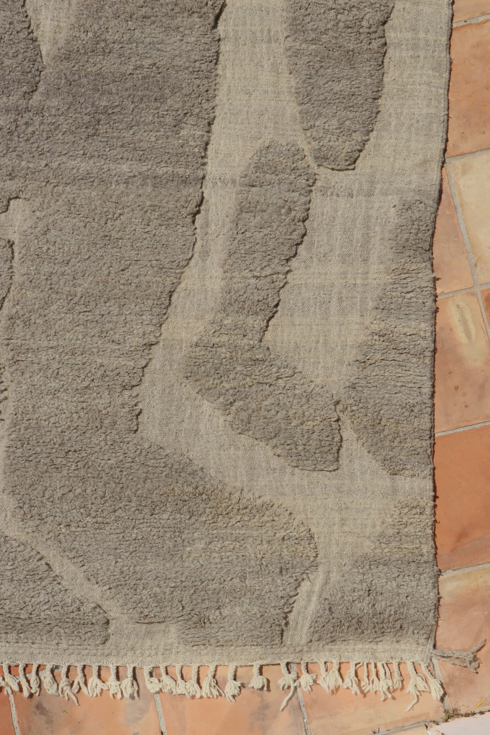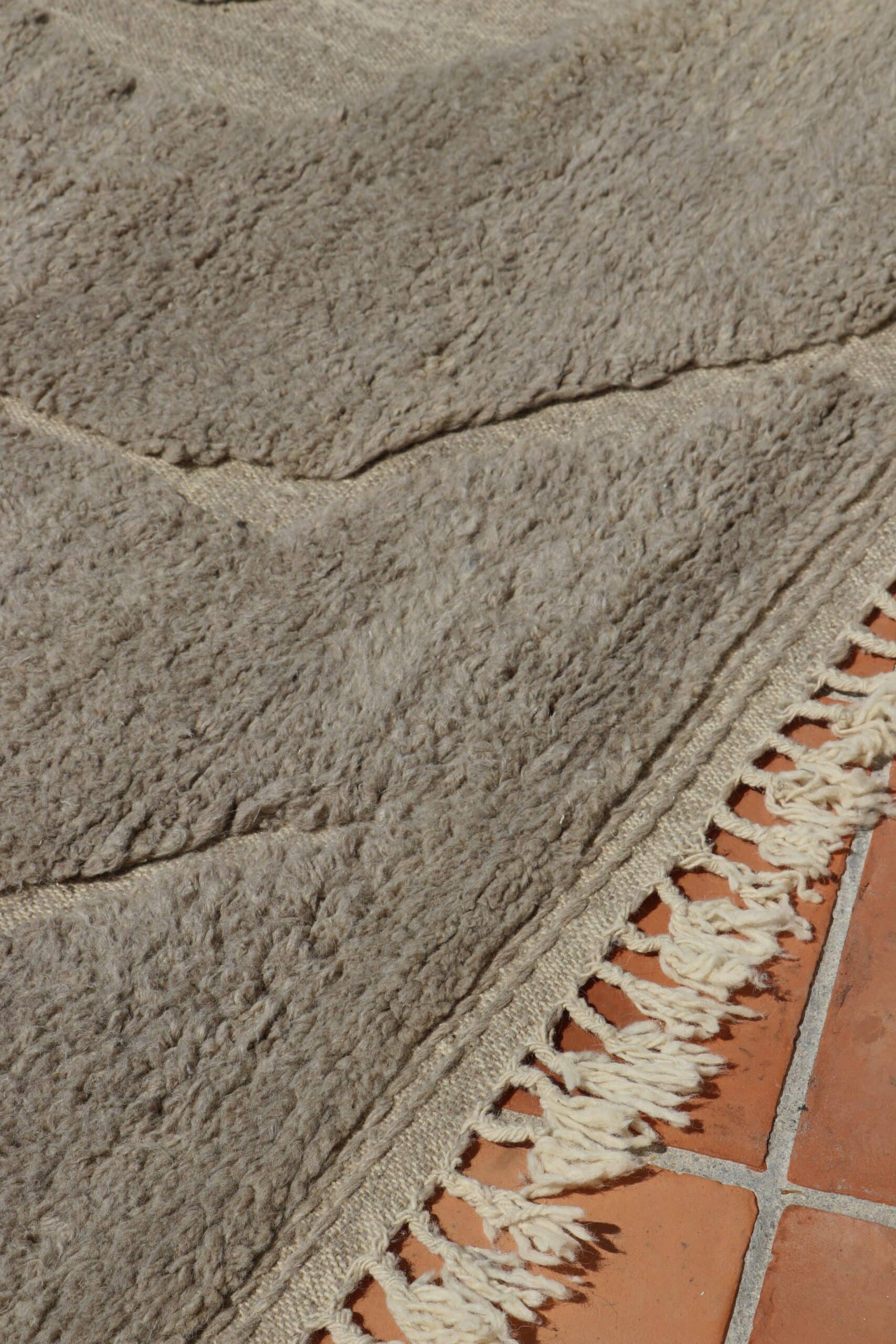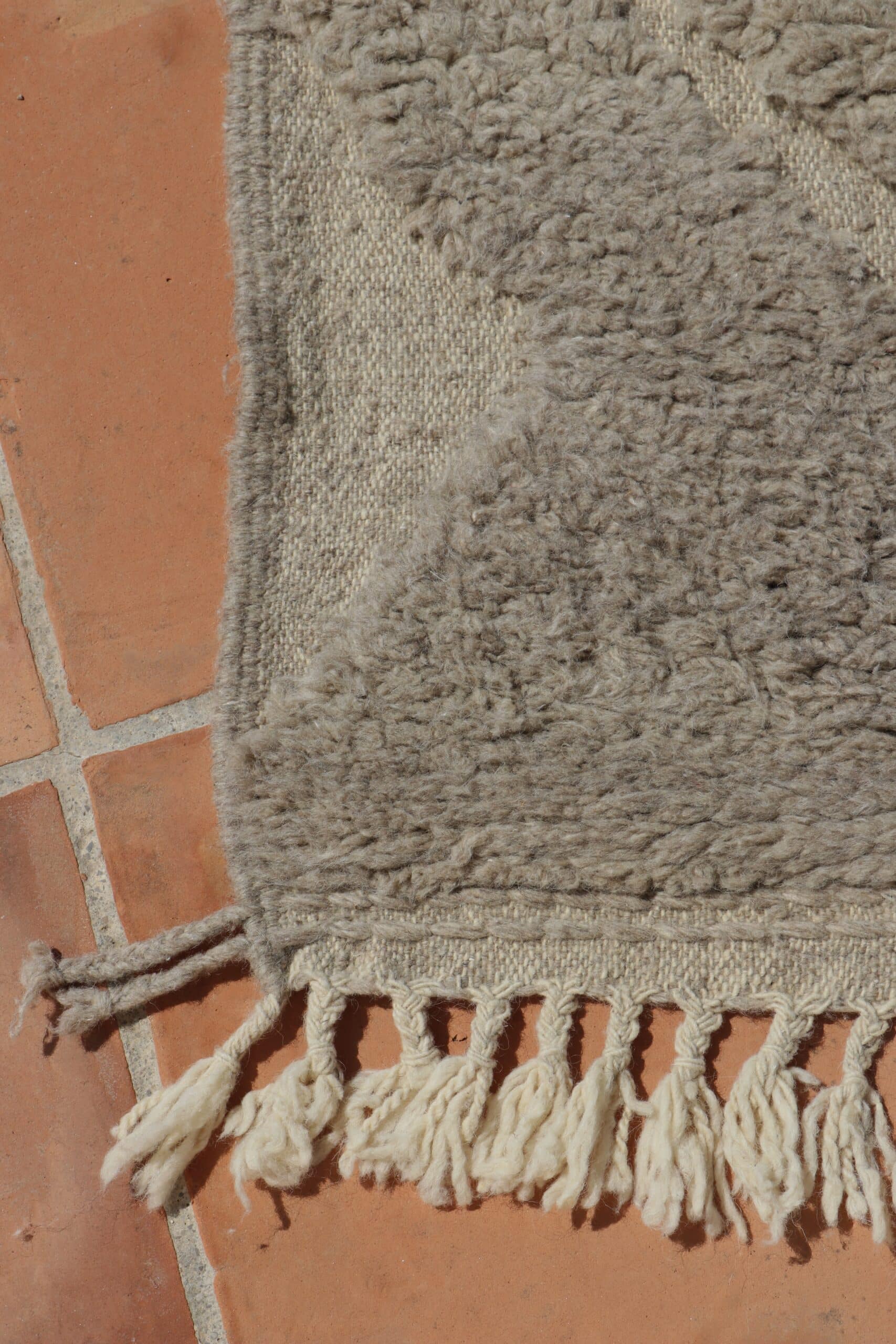Tapis Beni M’rirt n°30 de 320x212cm gris et blanc (franges), 100% laine de mouton non teintée, poids 14,7kg.