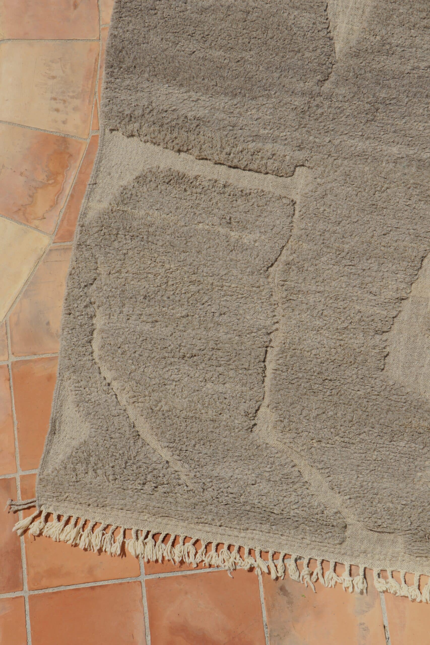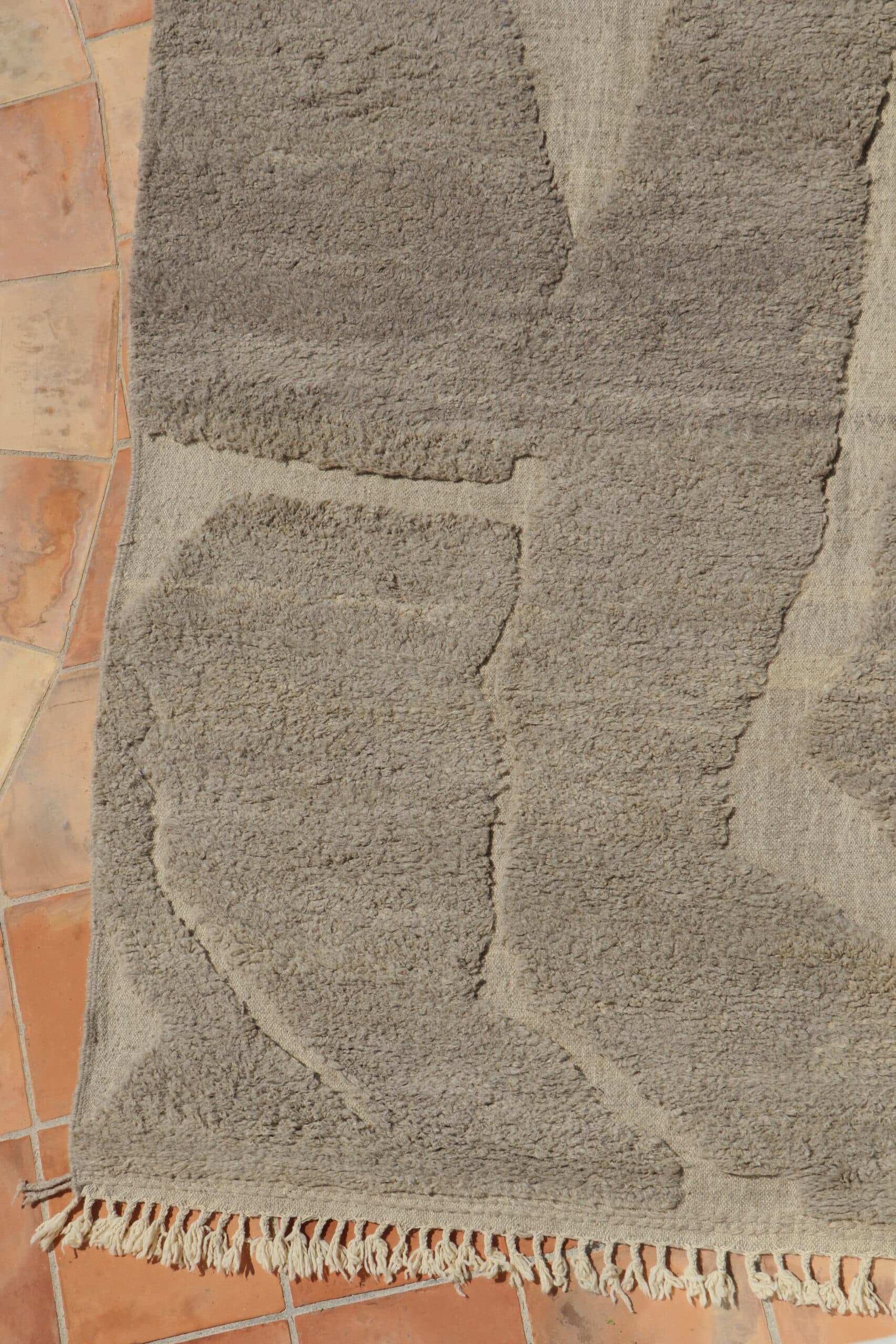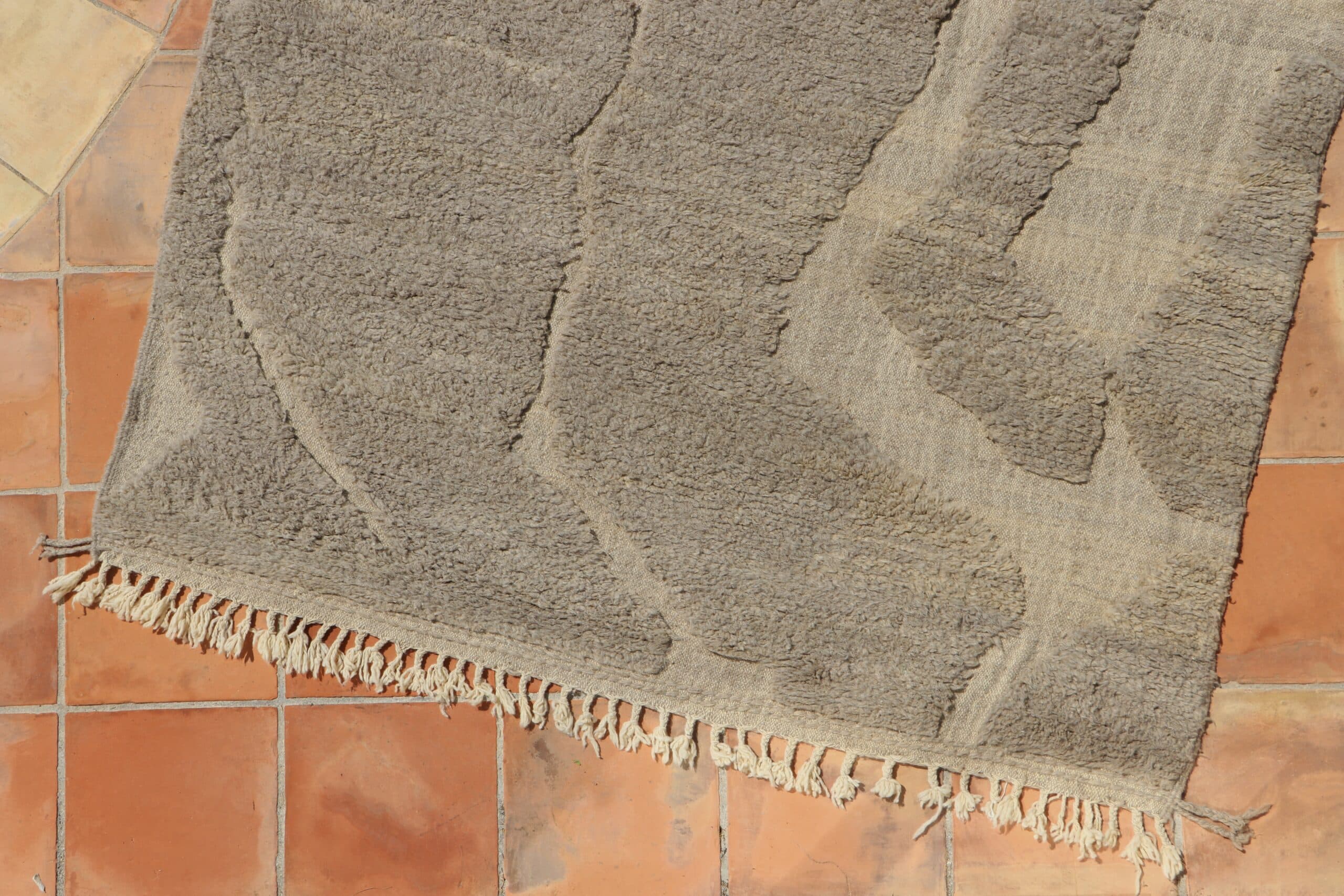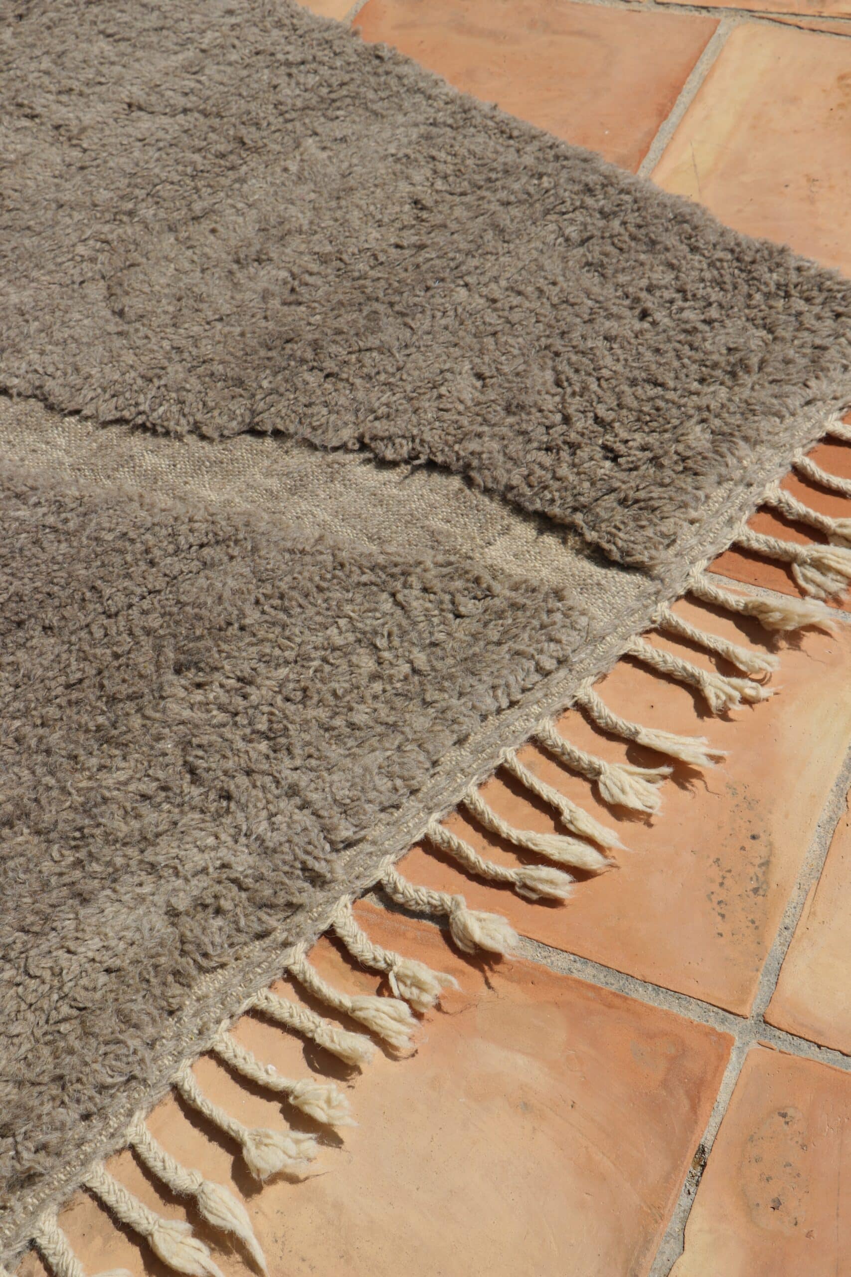 Tapis Beni M’rirt n°30 de 320x212cm gris et blanc (franges), 100% laine de mouton non teintée, poids 14,7kg.
