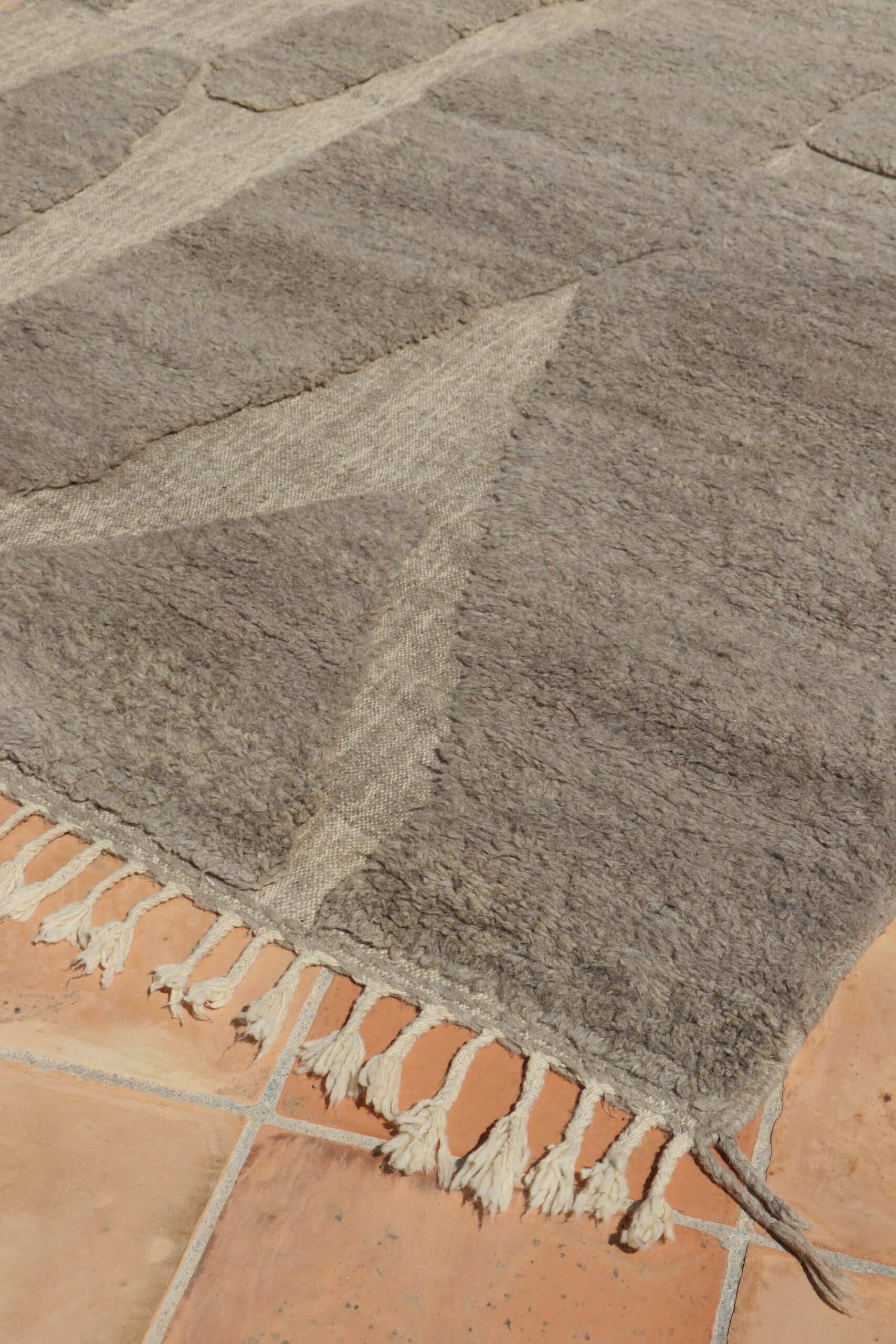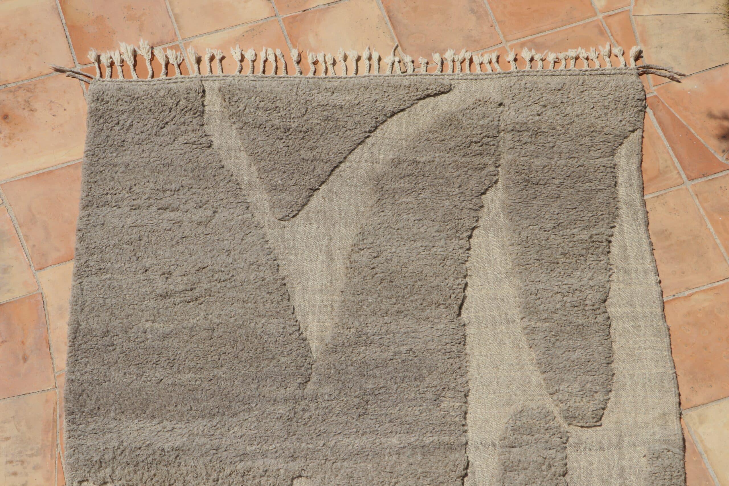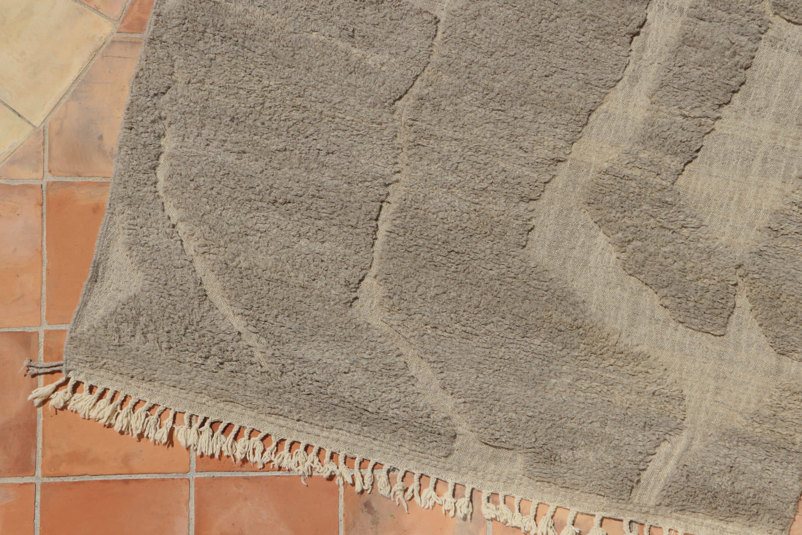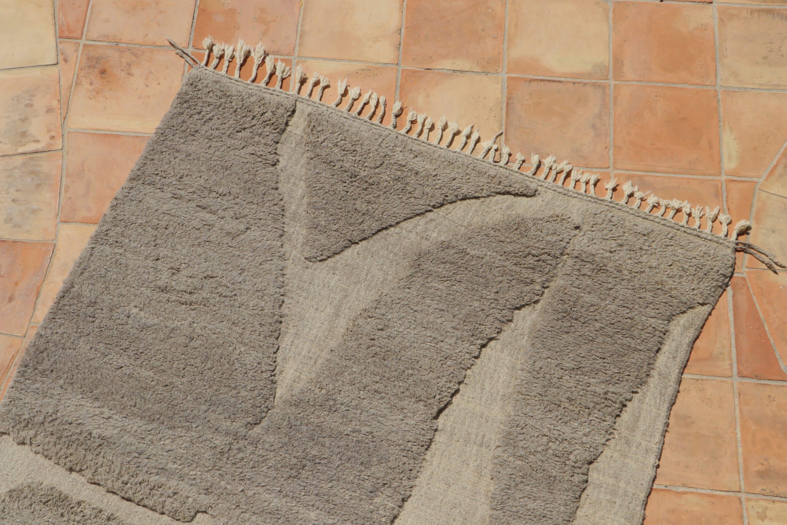 Tapis Beni M’rirt n°30 de 320x212cm gris et blanc (franges), 100% laine de mouton non teintée, poids 14,7kg.