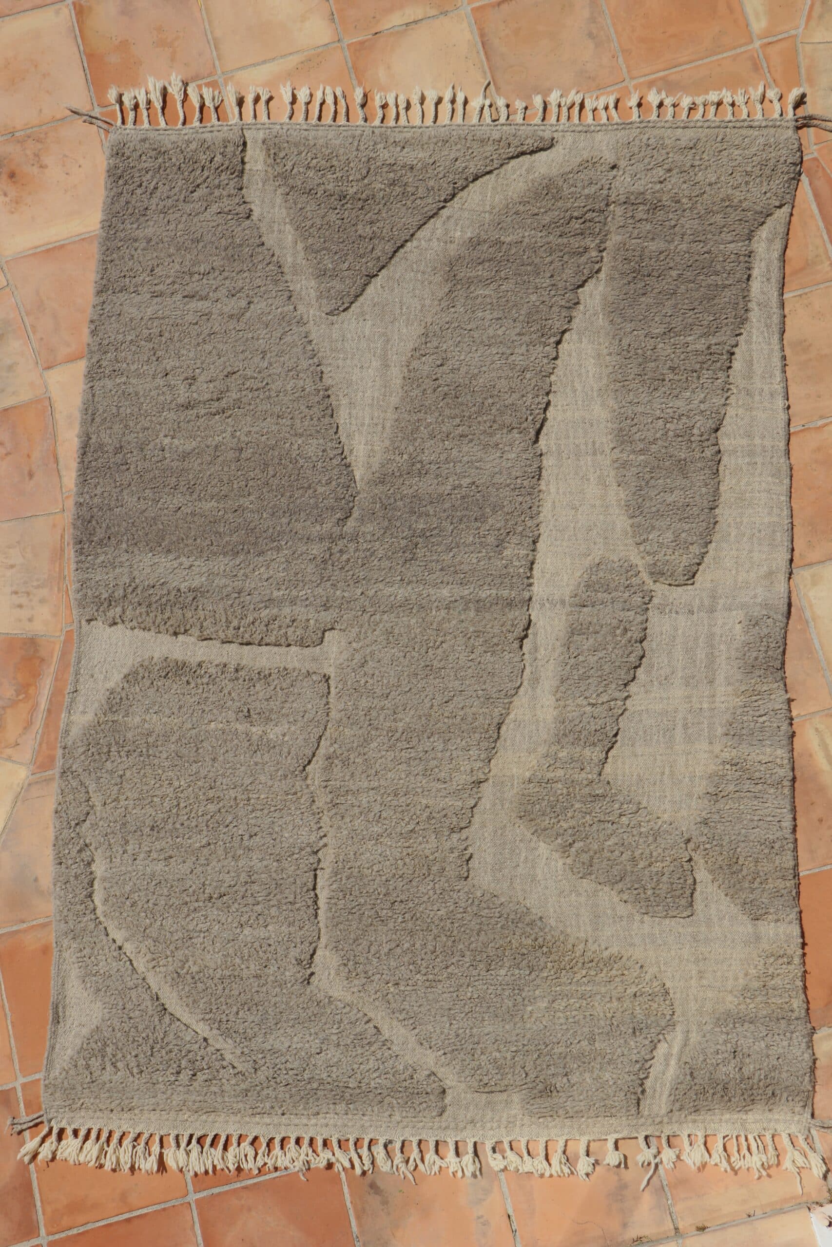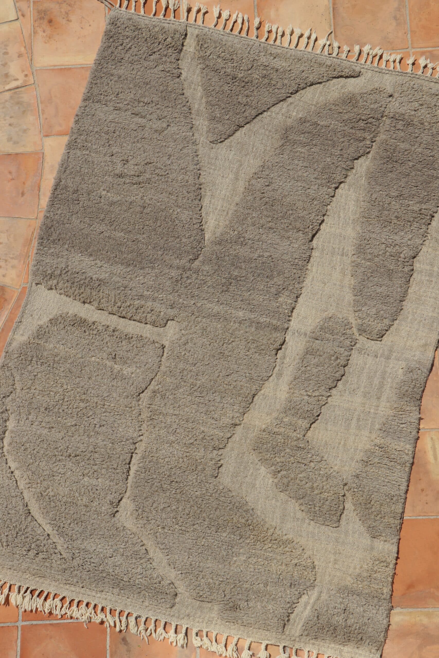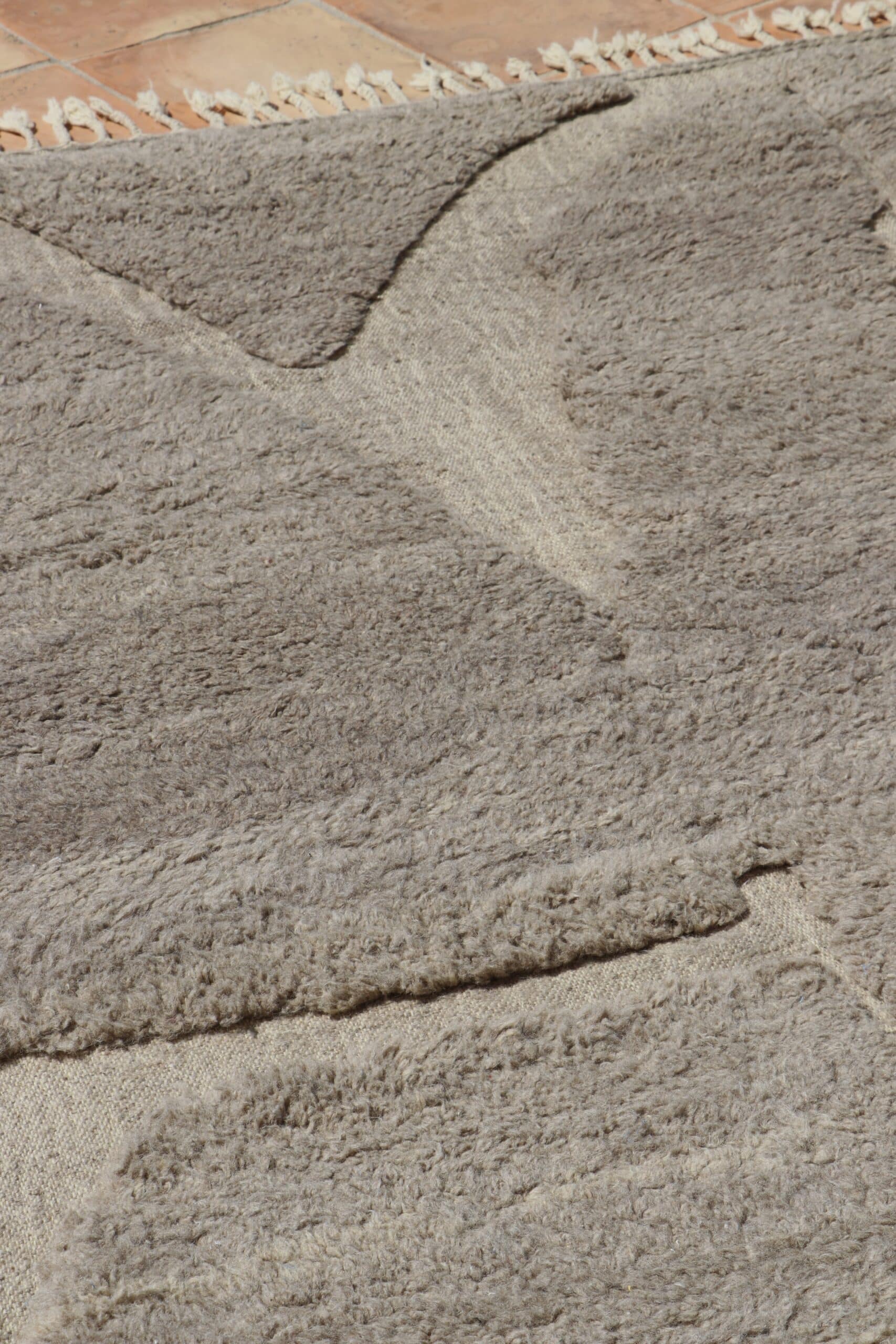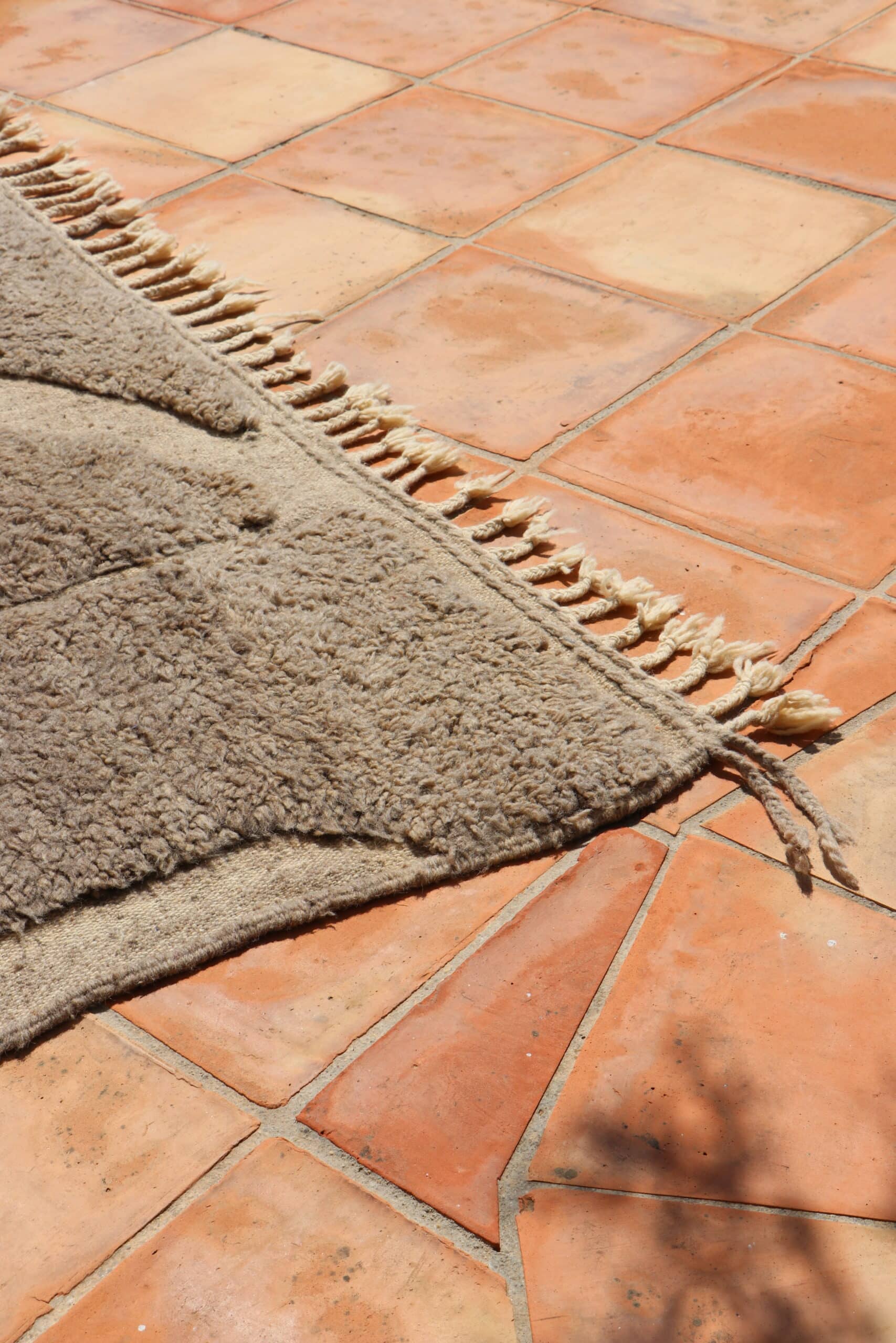 Tapis Beni M’rirt n°30 de 320x212cm gris et blanc (franges), 100% laine de mouton non teintée, poids 14,7kg.