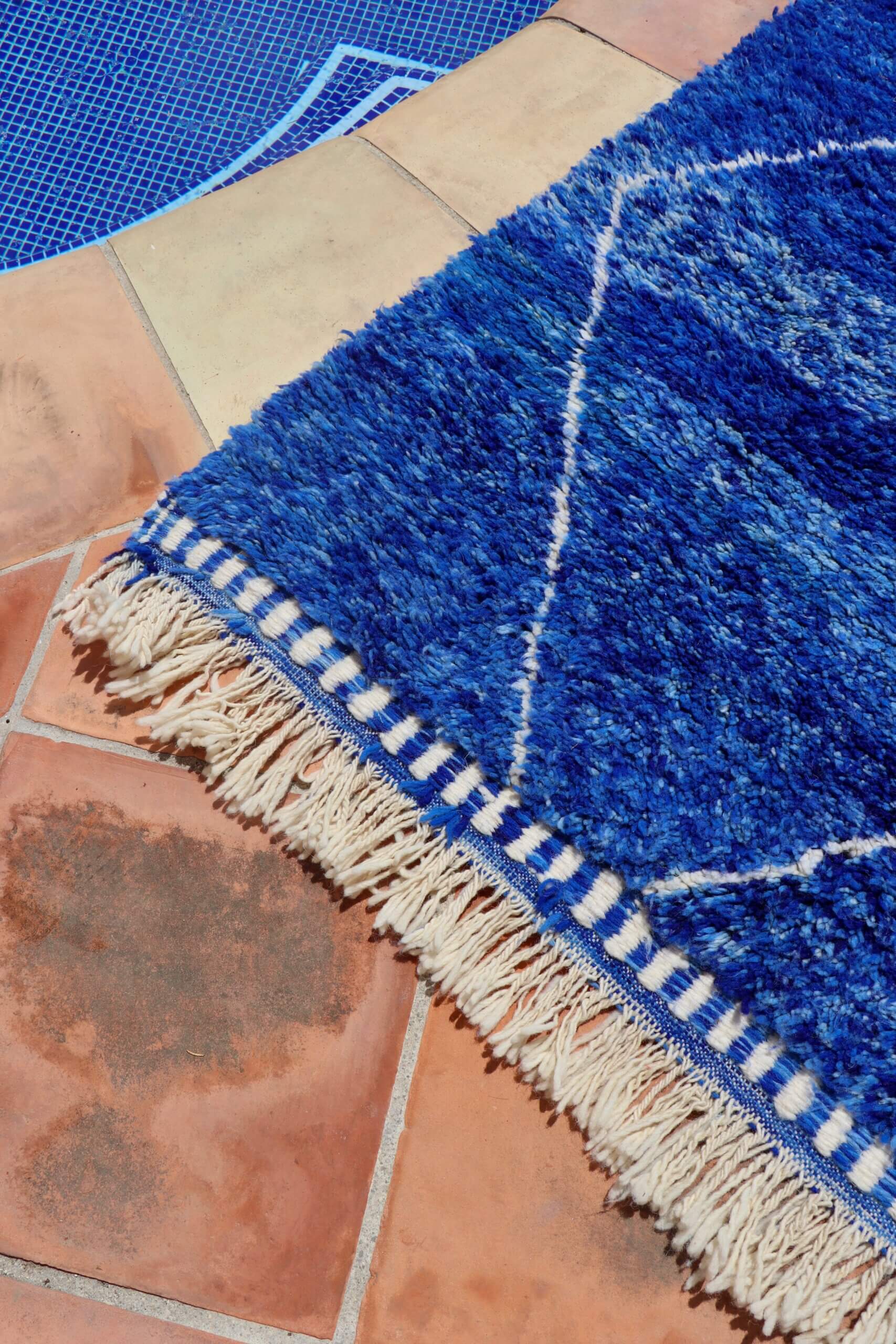 Ce luxueux tapis berbère Beni M’rirt va vous faire plonger dans un océan de douceur. Sa réalisation est 100% fait main par de talentueuses tisserandes, tissé sur un métier à tisser traditionnel dans les montagnes du Moyen Atlas au Maroc.