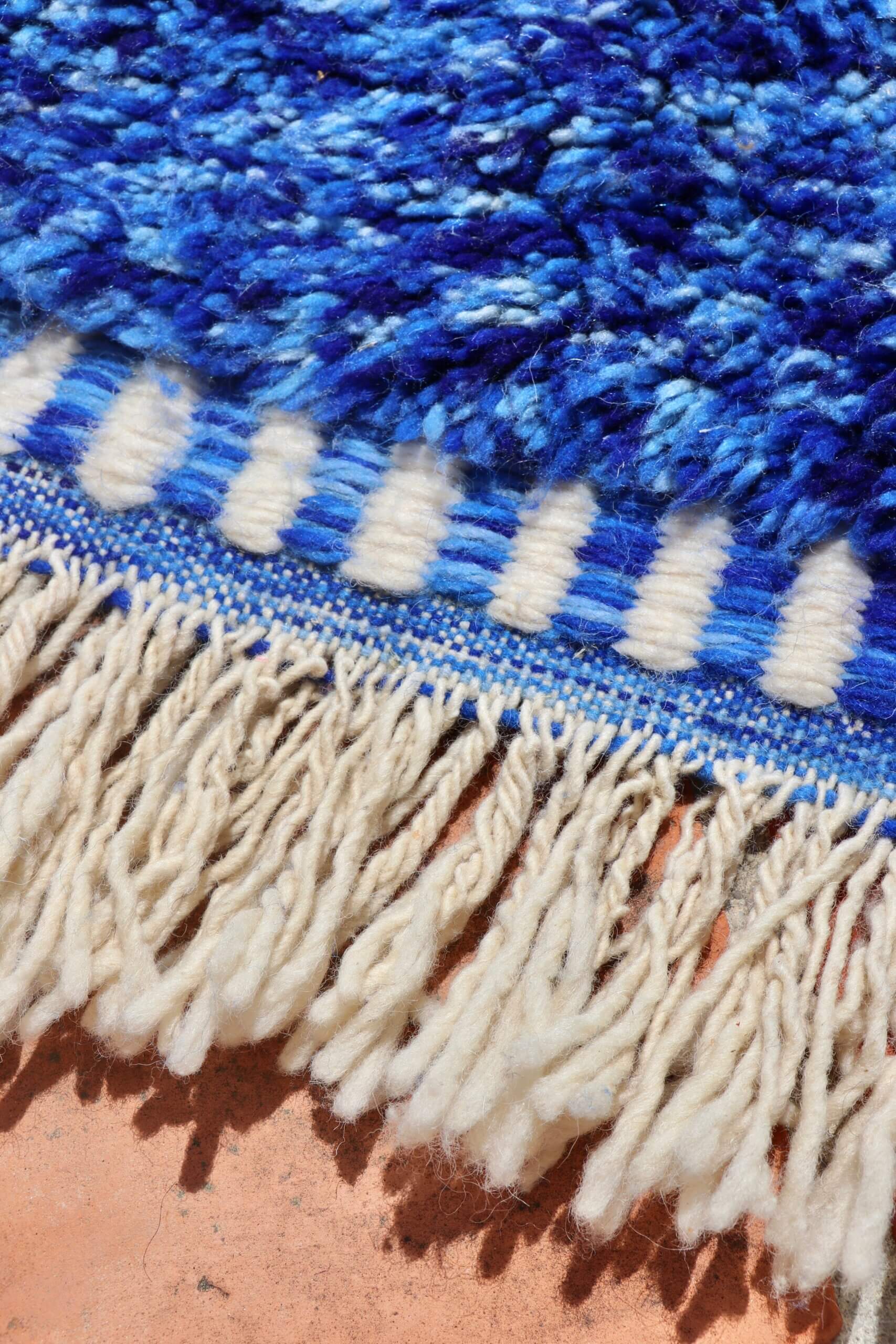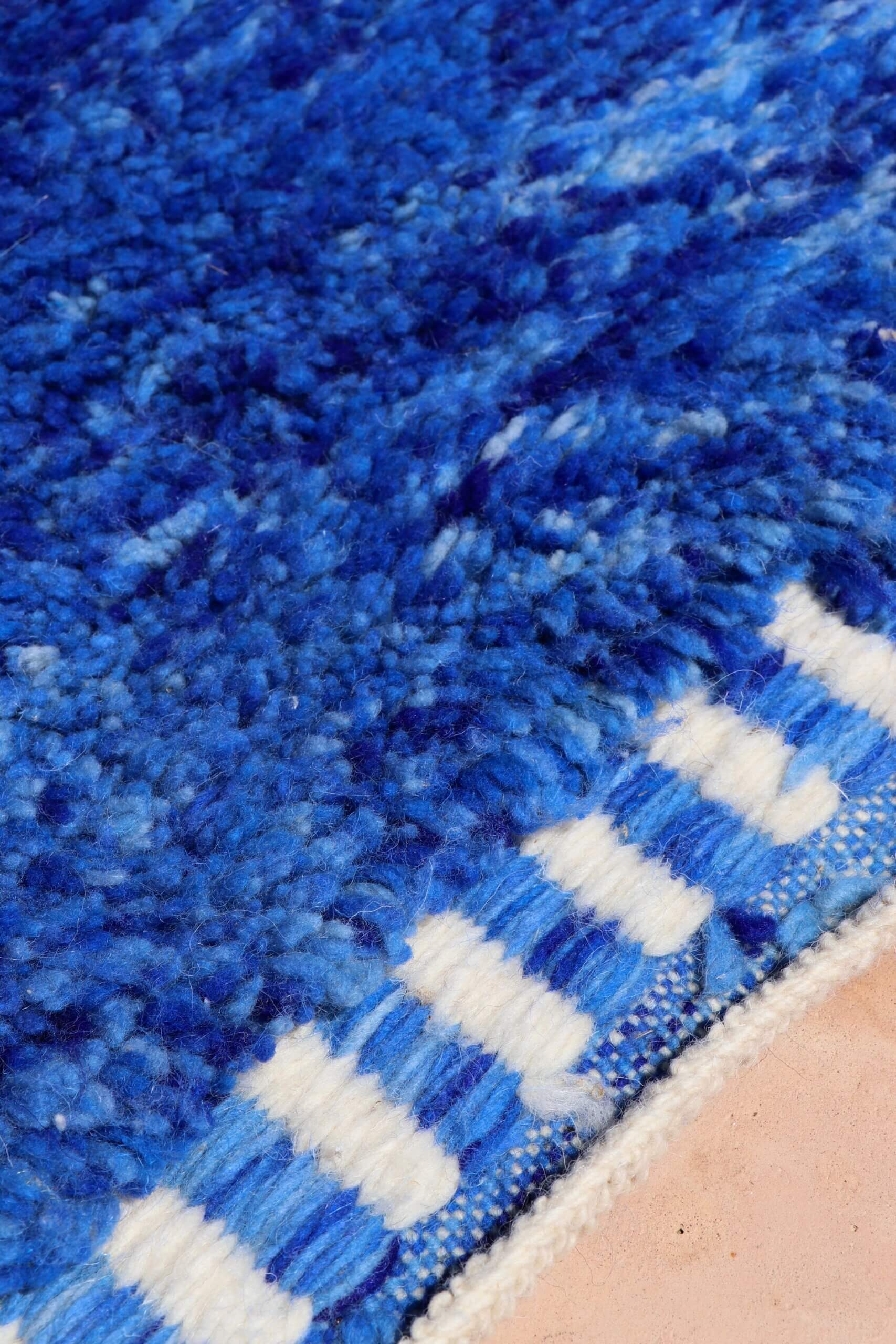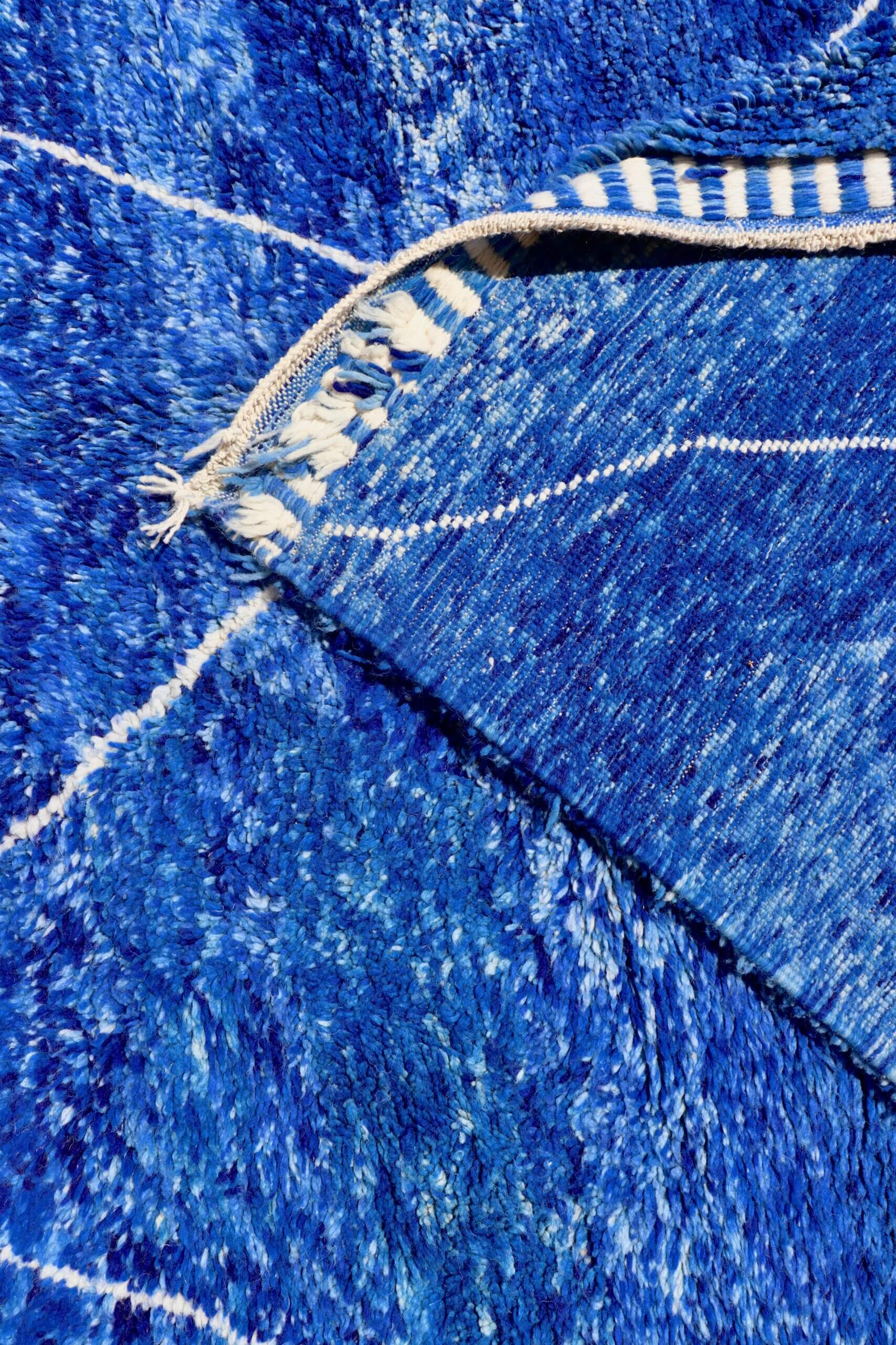 Tapis Beni M’rirt N°4 bleu et blanc, 325x200cm, 100% laine de mouton teintée naturellement, poids 19,2 kg.