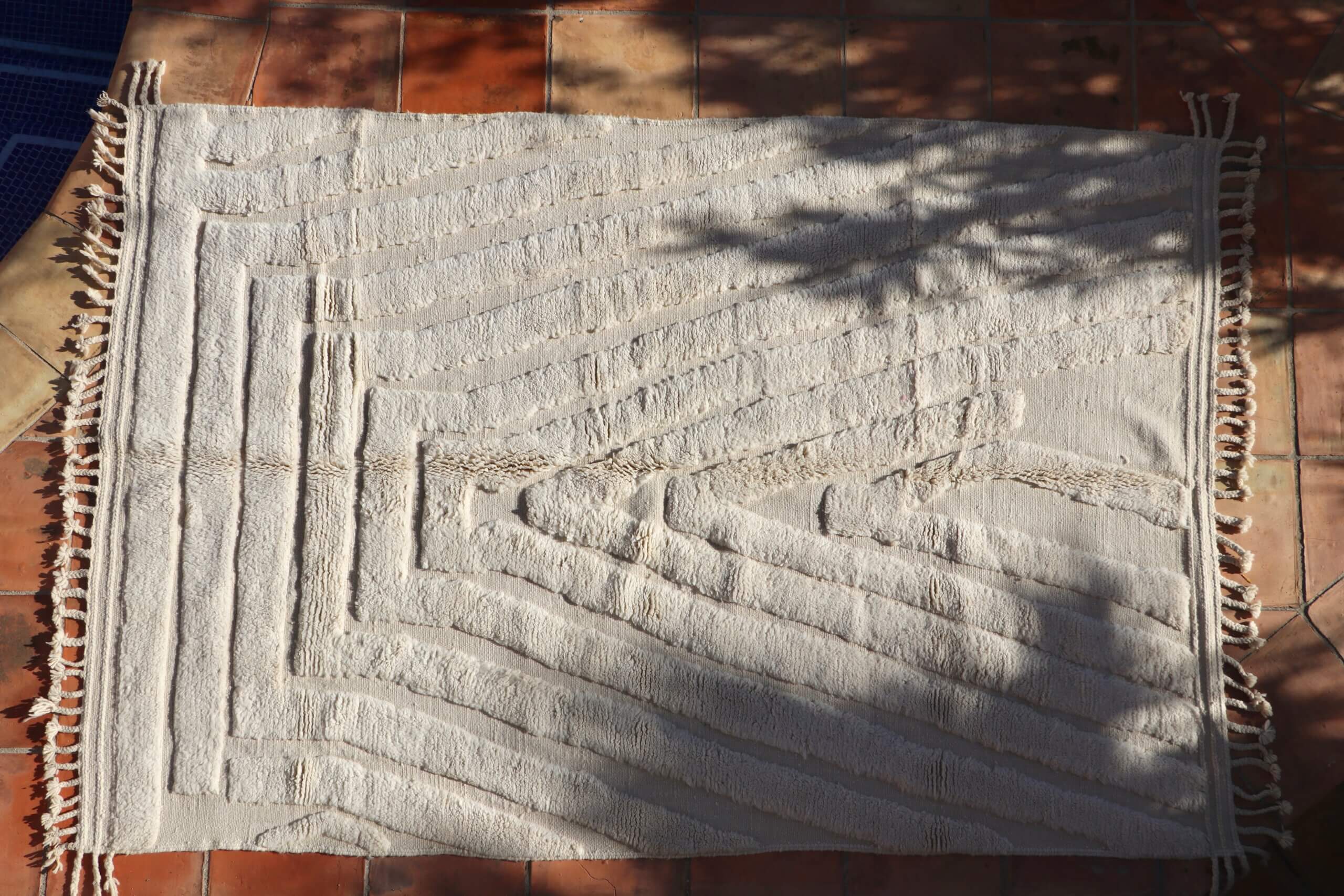 Tapis Beni Ouarain N°2 blanc/ivoire 320x200cm, 100% laine de mouton non teintée, poids 13,1 kg.